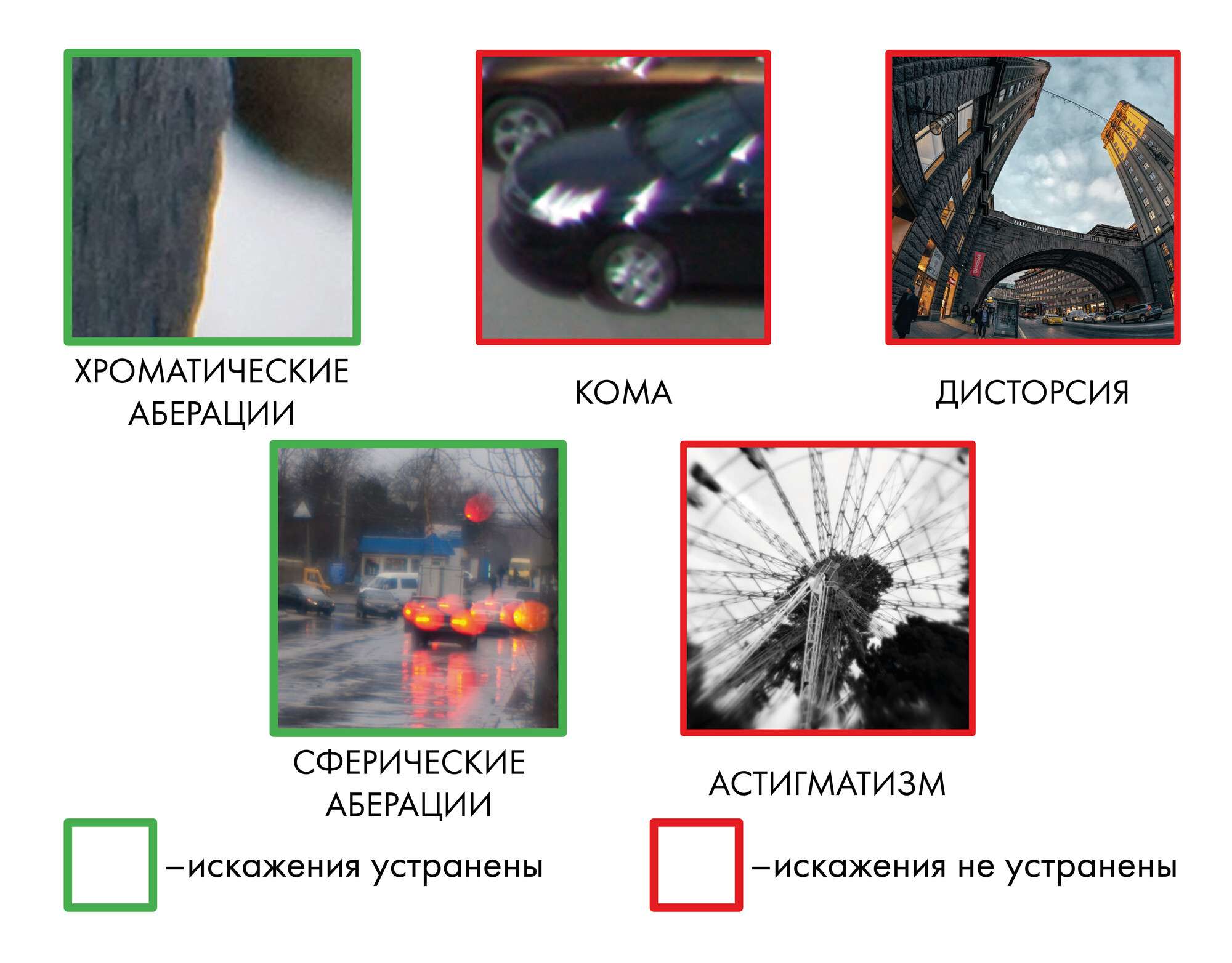 В простейшем случае ахромат представляет собой две склеенные линзы, одна из которых выпуклая, а другая — вогнутая.Исправлены частично хроматическая и сферическая аберрации; f = 1/14.