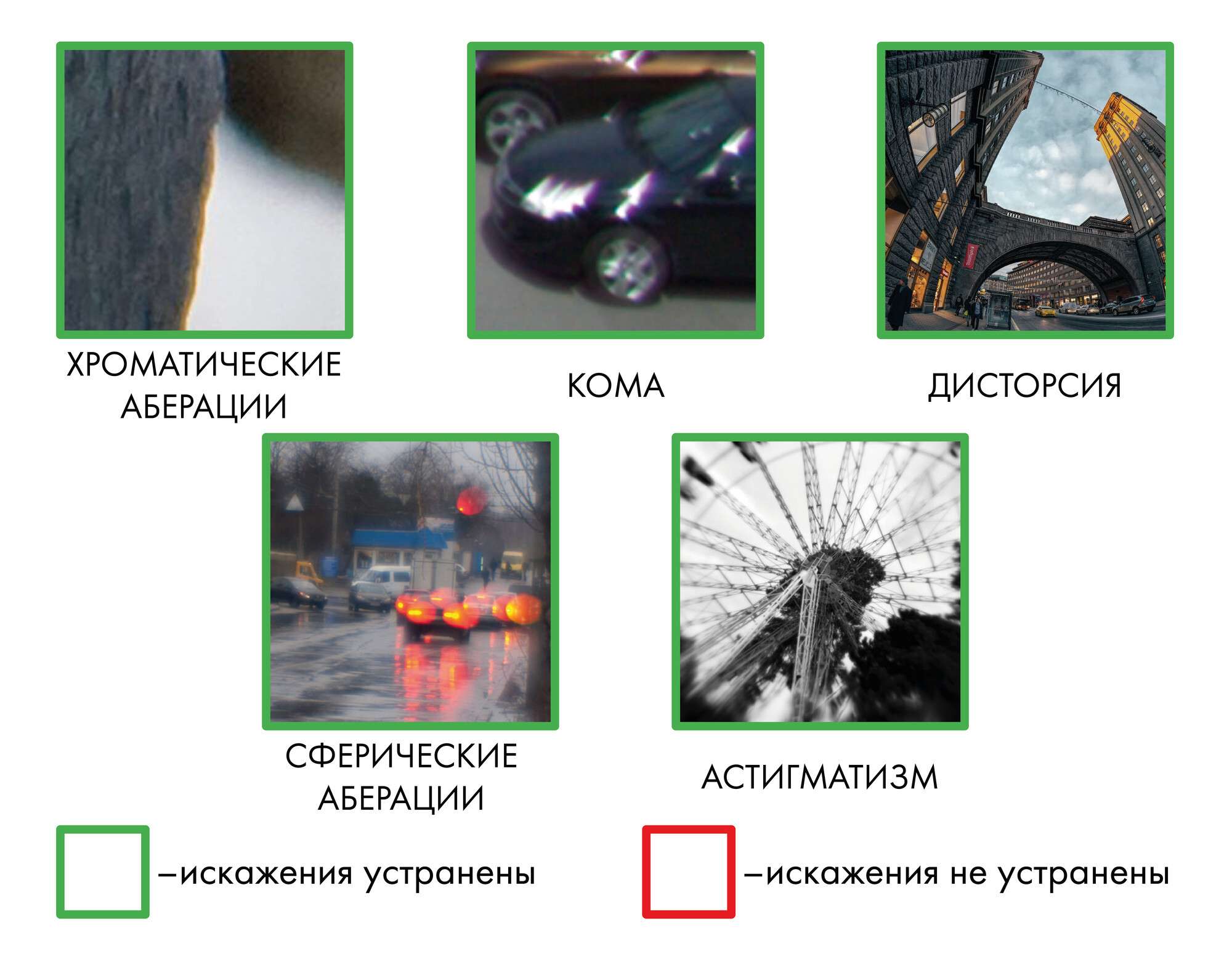 Анастигмат состоит не менее чем из трех линз.В объективе исправлены практически все аберрации.