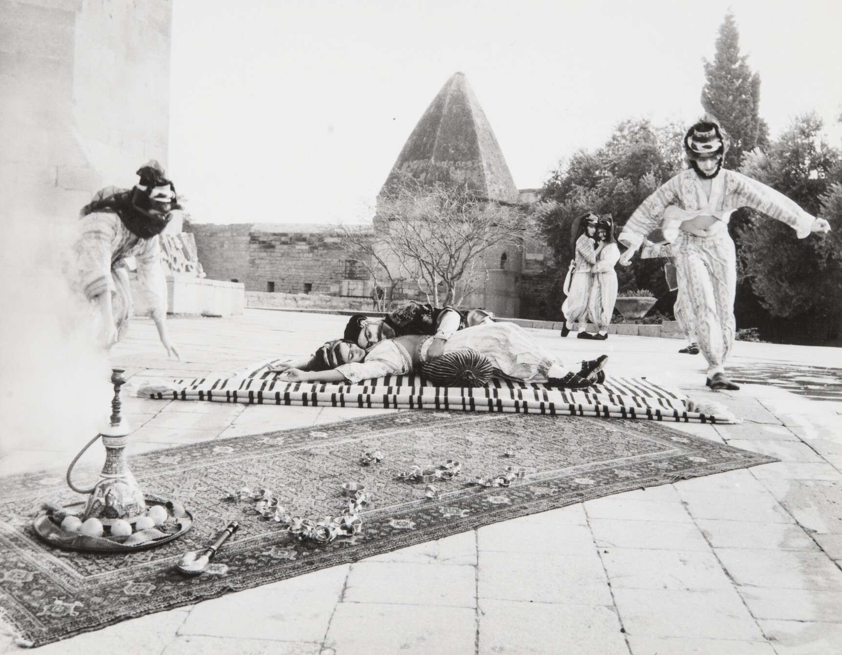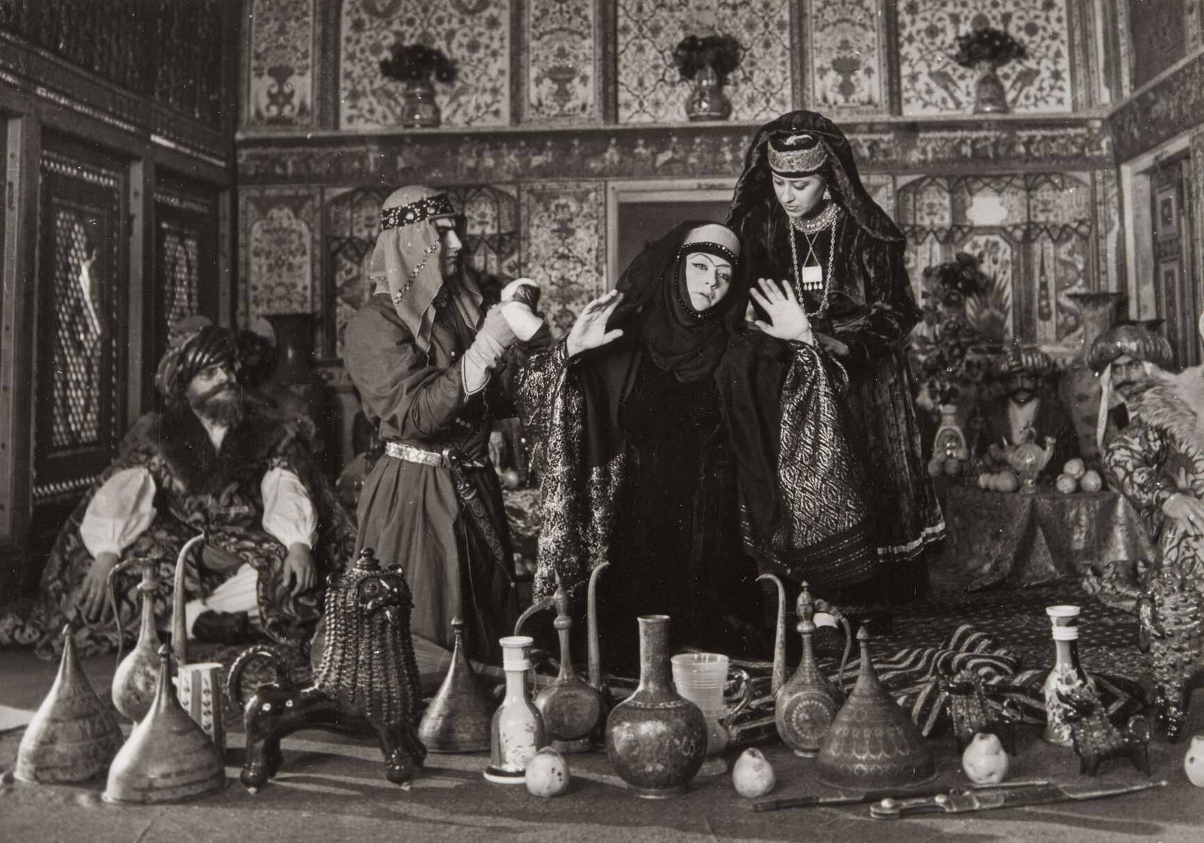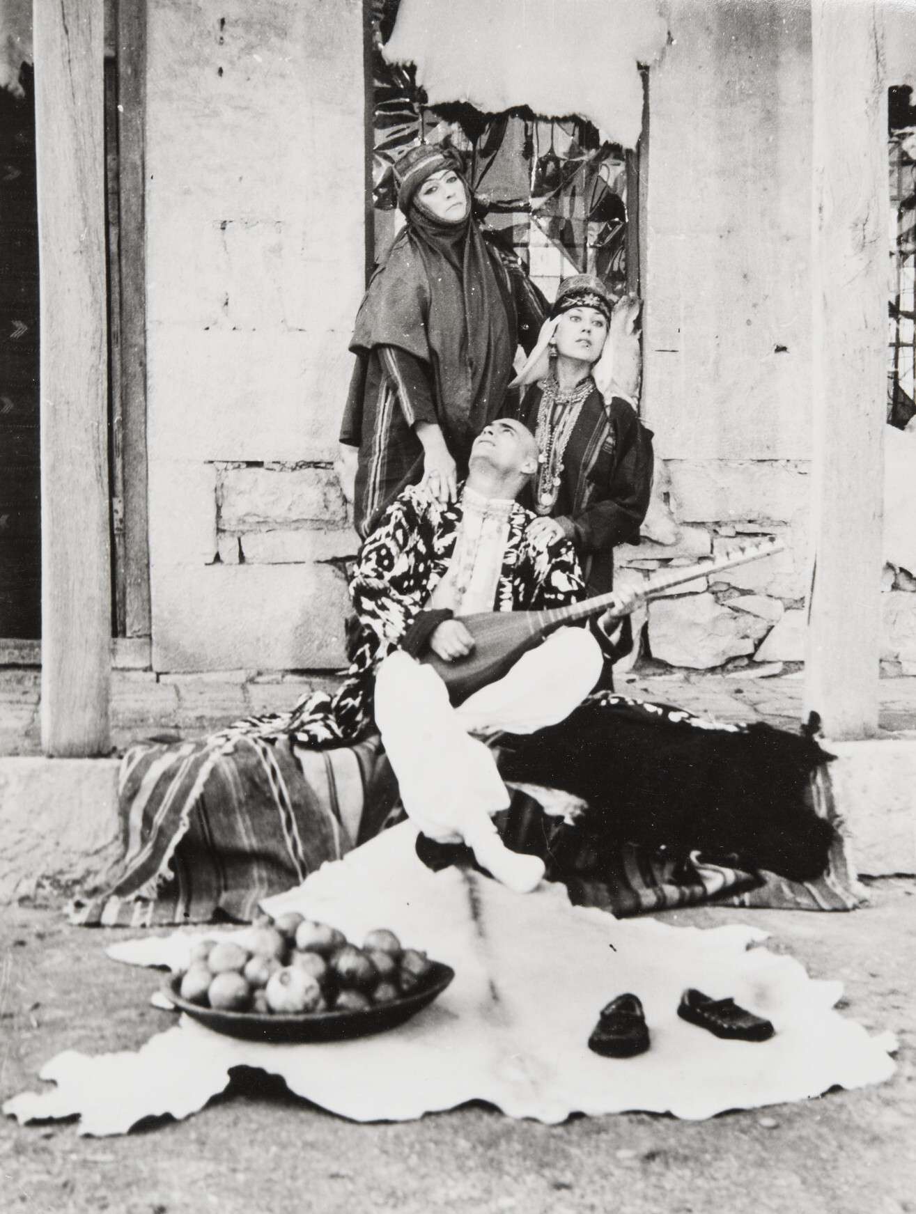 As in his earlier works, Paradzhanov characterizes the figures of “Ashik-Kerib” through costume, headwear, jewelry, makeup, and the mise-en-scène. Each scene, framed frontally before a still camera, becomes its own visual tableau, much like the Persian miniatures that inspired the film’s stylistic approach. In “Ashik-Kerib” the director does not restrain his expressive means; he sometimes appears deliberately excessive in shaping each character and setting. The film remains one of the summits of Paradzhanov’s visual poetics in cinema.