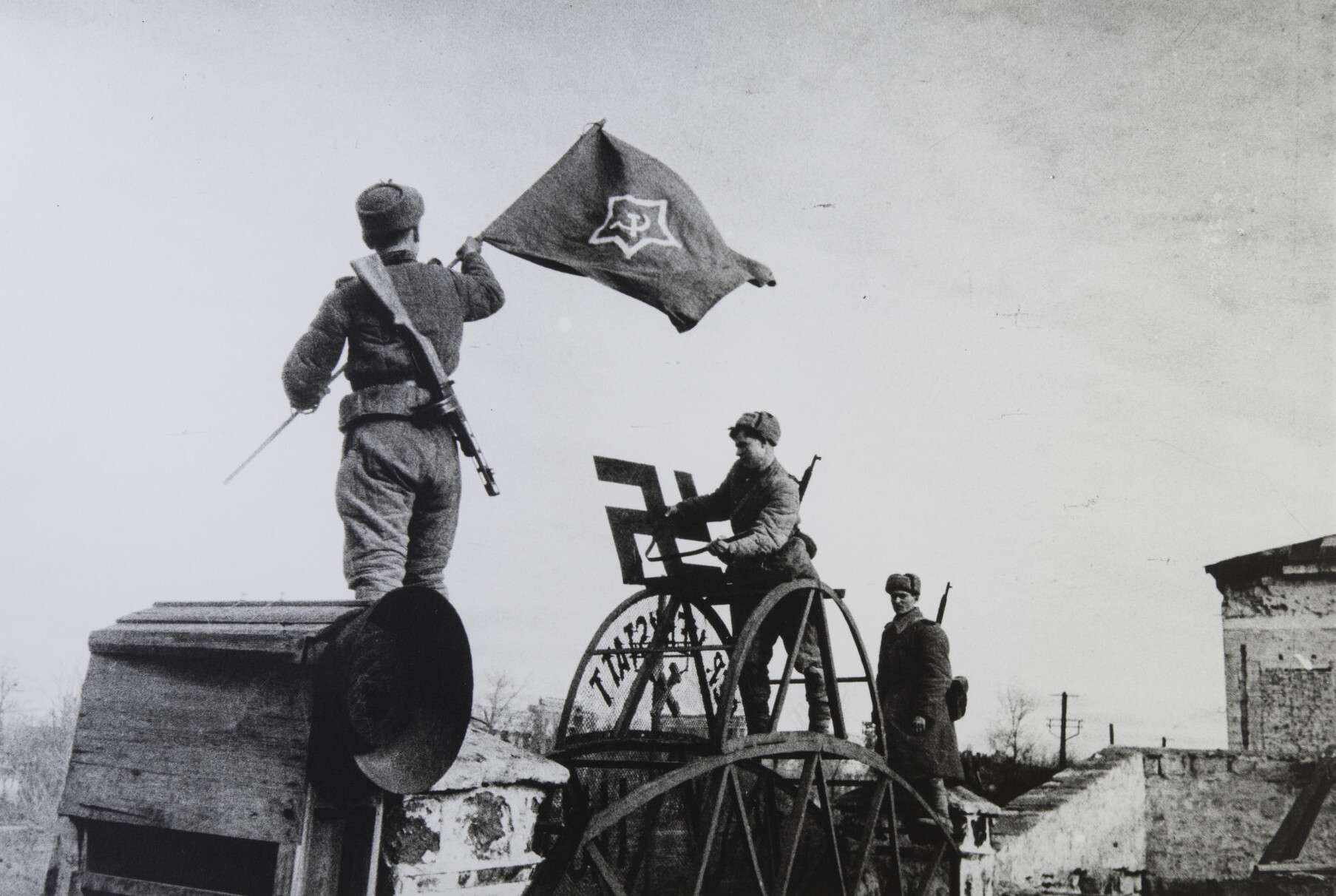 Советский флаг, вместо свастики. Завод им. Войнова