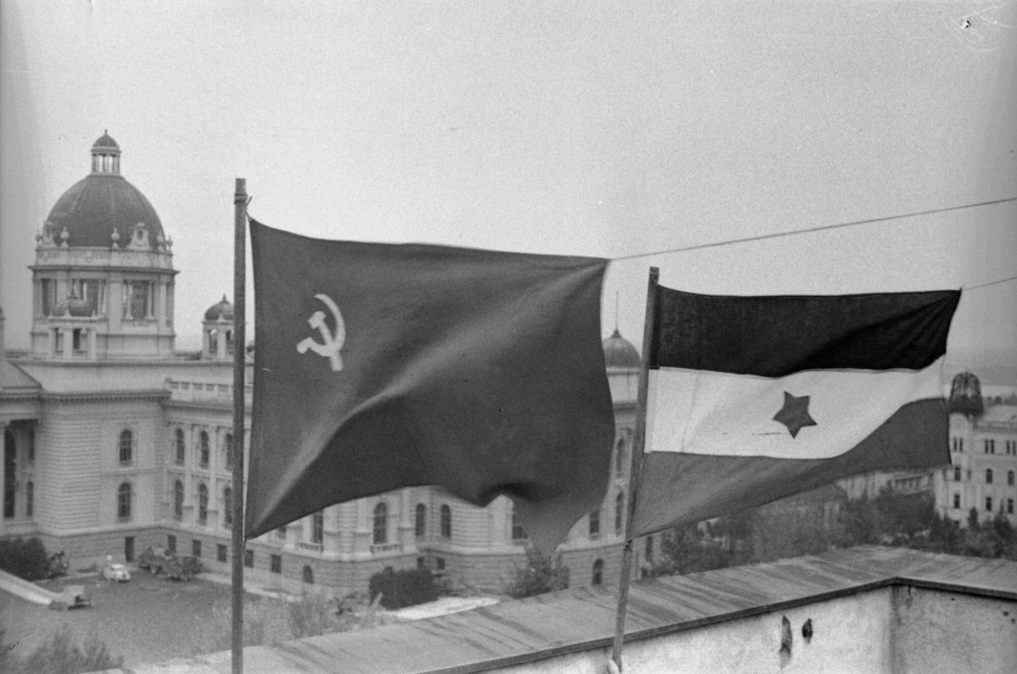 Советский и югославский флаги над Белградом