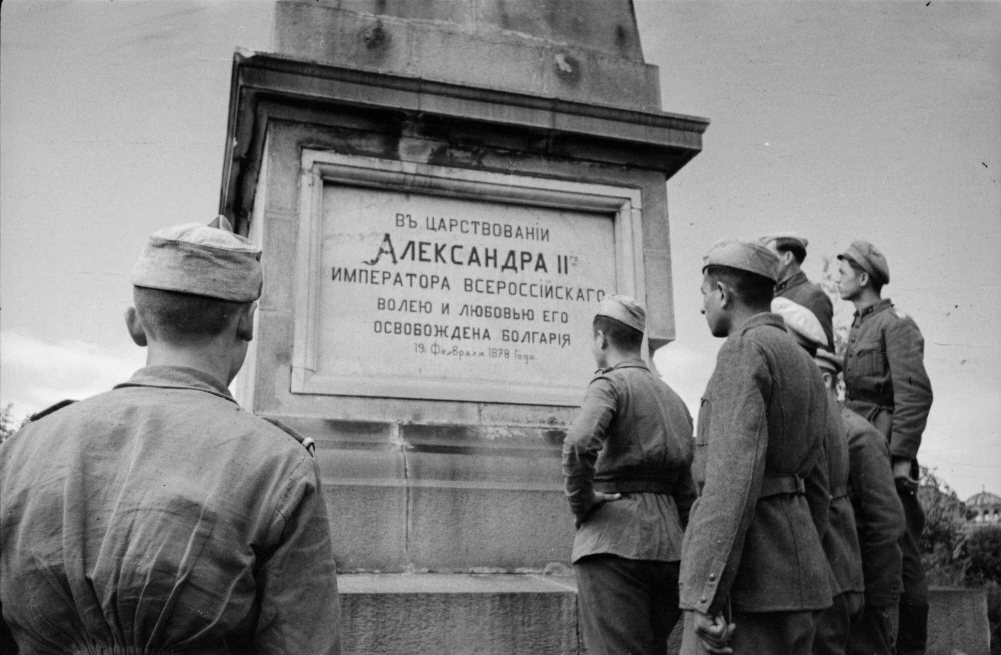 Советские солдаты у памятника в честь императора Александра II в Софии