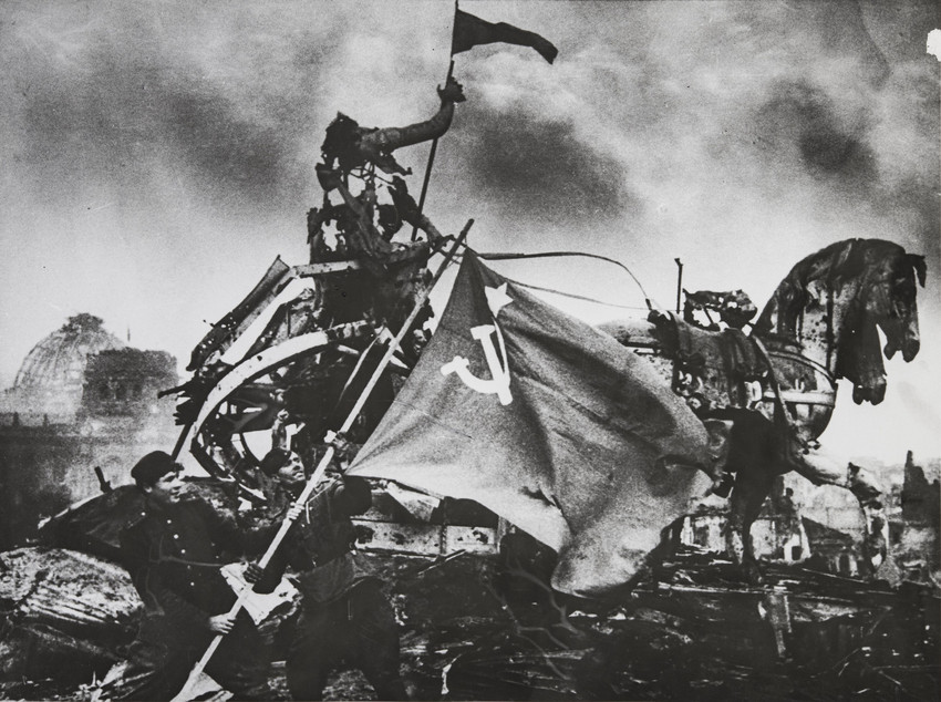 Флаг Победы на Бранденбургских воротах