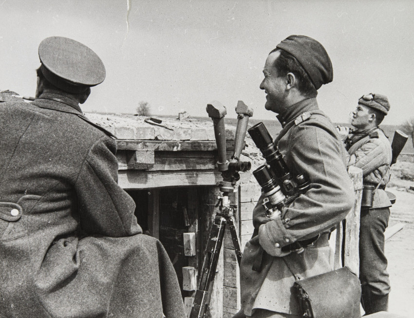 Кинооператор Илья Ароно, Константин Симонов с друзьями у Рейхстага