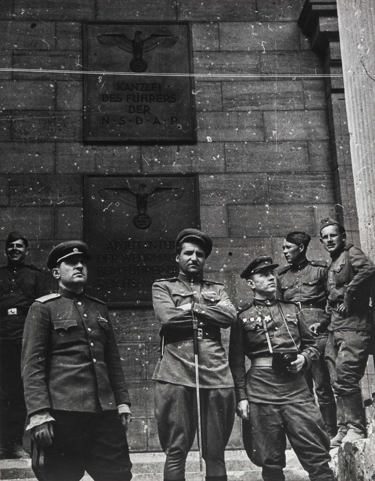 Константин Симонов на ступенях рейхсканцелярии