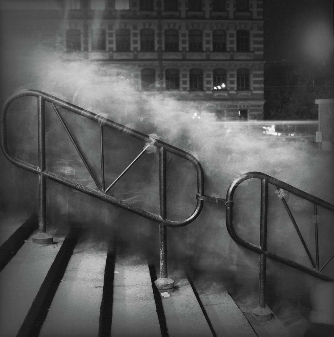 The Black and White Magic of Saint Petersburg series, first presented to the audience in 1996 at the Grand Hall of the Saint Petersburg Philharmonia, explores the theme of Dostoyevsky’s Saint Petersburg in the streets of Kolomna. The stark contrast between black and white is replaced by soft grey tones; the space is now filled with ghostly Saint Petersburg light. Timeless photographs, born of light and long exposure, blur the borders of reality, creating an impression of subtle melancholy, ghostliness and the instability of human life in a rapidly changing world. Working on the series, Alexey Titarenko evolves into a fully-fledged artist with a bright, individual, and recognisable style. The basis of his style becomes the psychologism of images, supported by musical harmony alternating between major and minor, technically challenging and nuanced tonality of each photograph, conceived during the photoshoot and intensified with printing and toning.