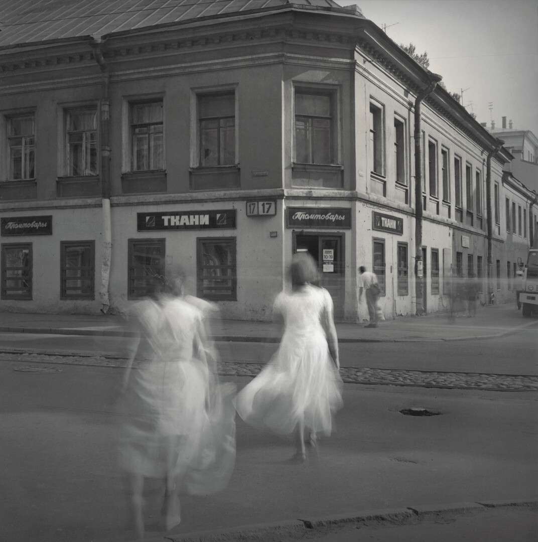 The next series to appear, City of Shadows, drew inspiration from long walks around the city and a passion for classical music. The photographer managed to accurately capture the troubled atmosphere of the period, the social catastrophe of the early 1990s in St. Petersburg. In his work on the series, Alexey Titarenko to the full extent uses the capabilities of long exposure, making his subjects submerge in the flow of time, which is almost tangible. In 1994, the series was presented at Pushkinskaya 10, on music stands in an installation with giant illuminated sheets of tracing paper hanging down from the ceiling, creating a labyrinth for the audience to walk through, casting their shadows onto paper and blending their figures with those in the photographs.