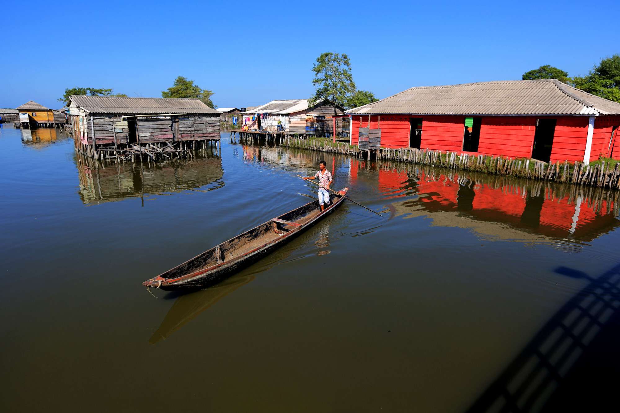 Рыбак в деревне на сваях Нуэва Венесия (Новая Венеция)