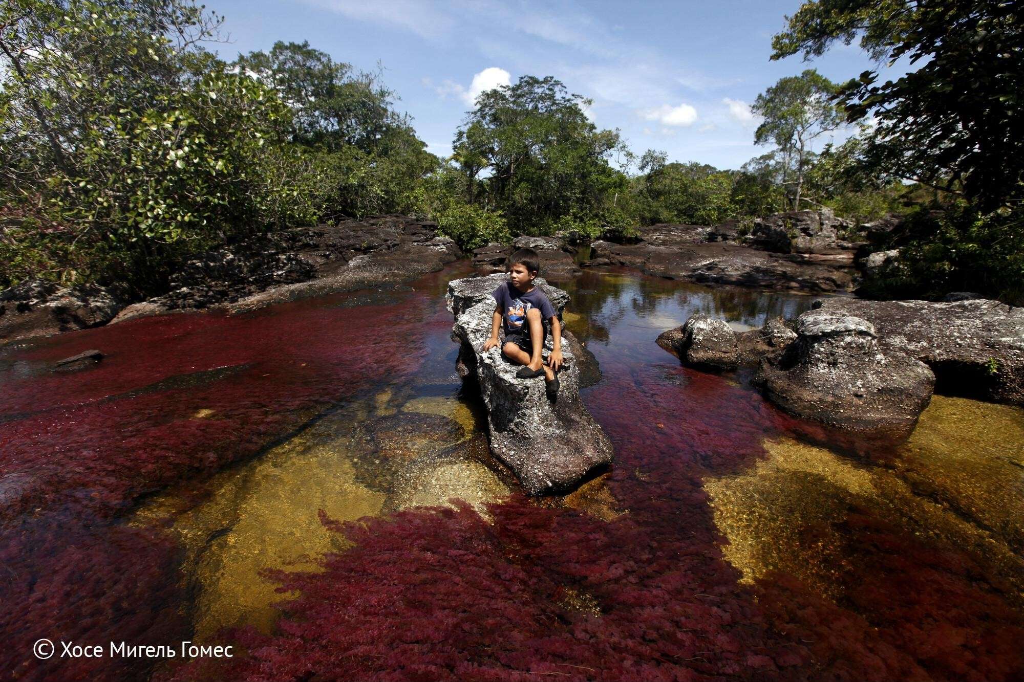 Мальчик посреди Каньо-Кристалес, или «реки пяти цветов»