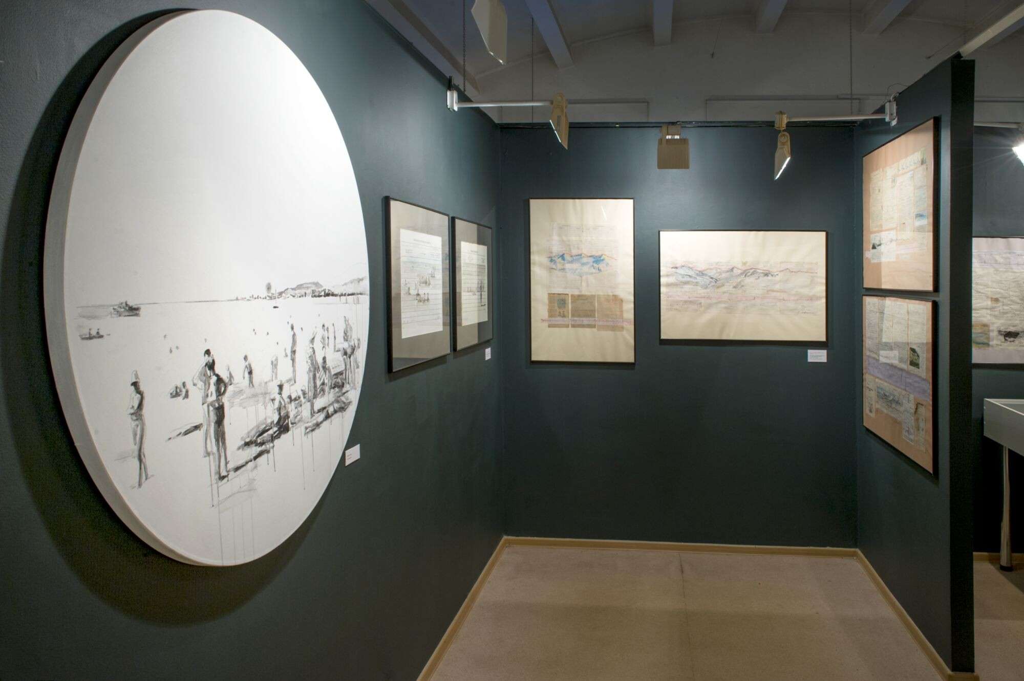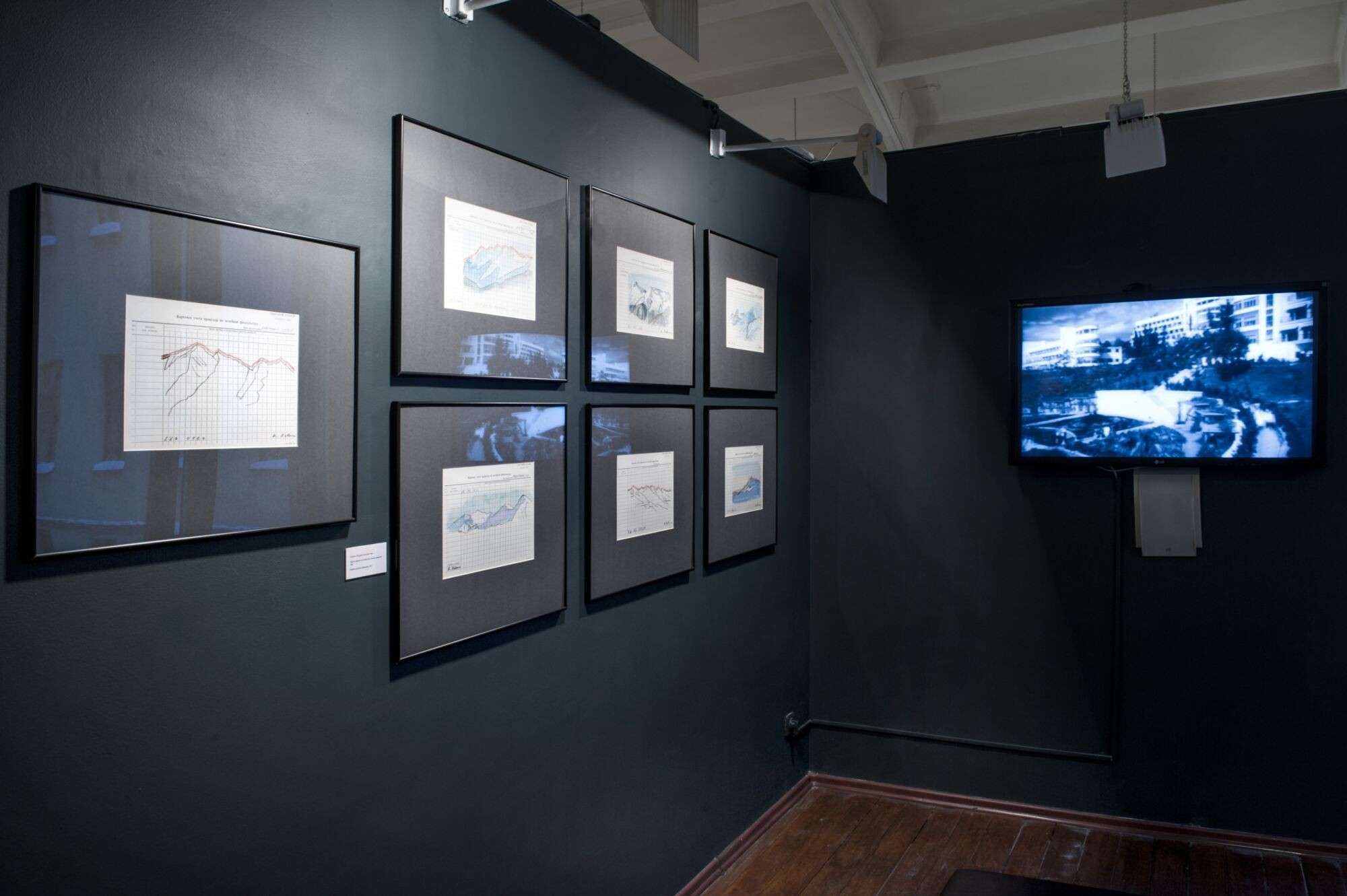 Cardiogram of the Mountains, a series of drawings and collages on blanks forms from the treatment room, over various charts and medical records, is an attempt to discover the timeless basis of life through the discovery of cultural layers.