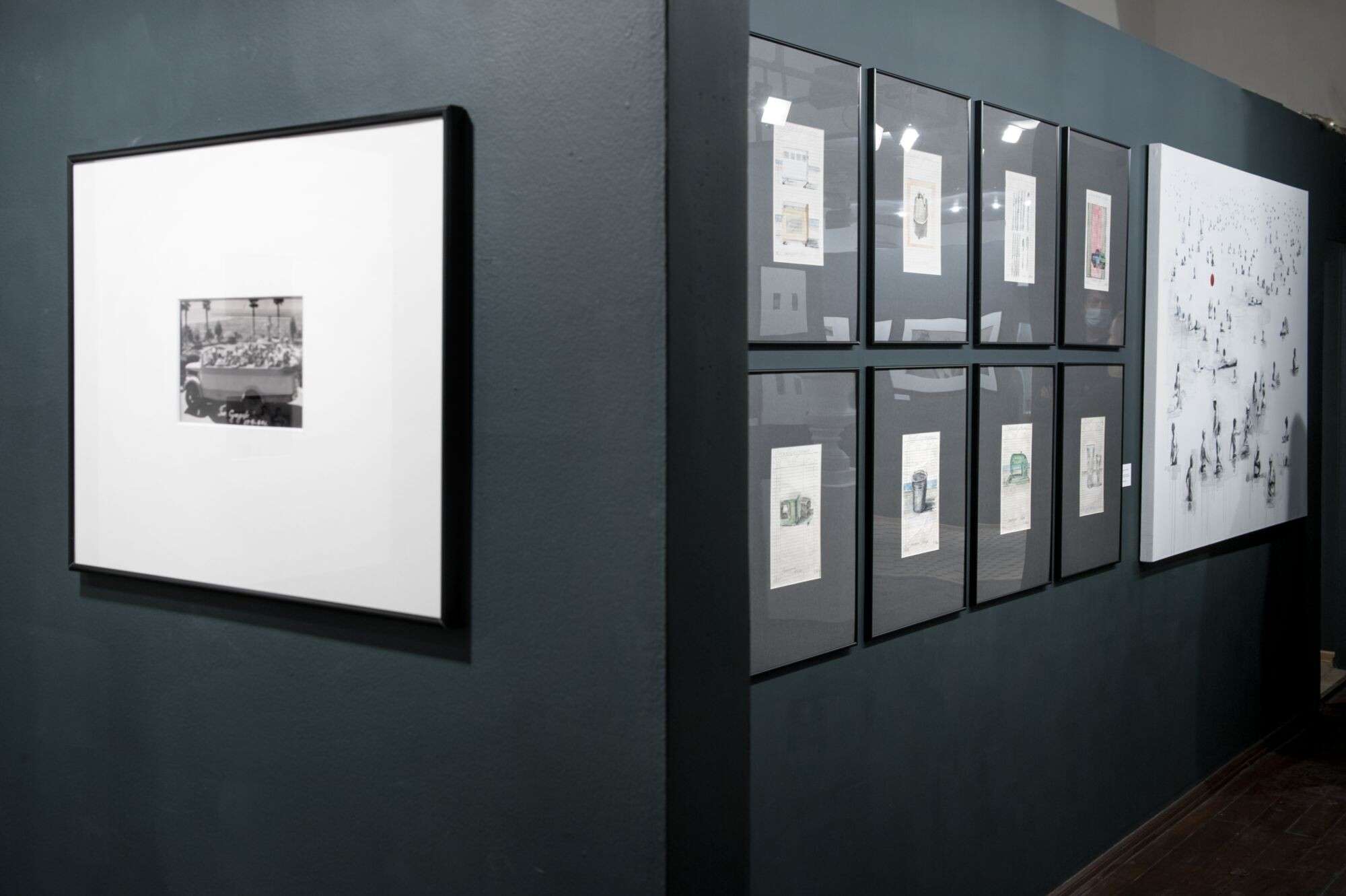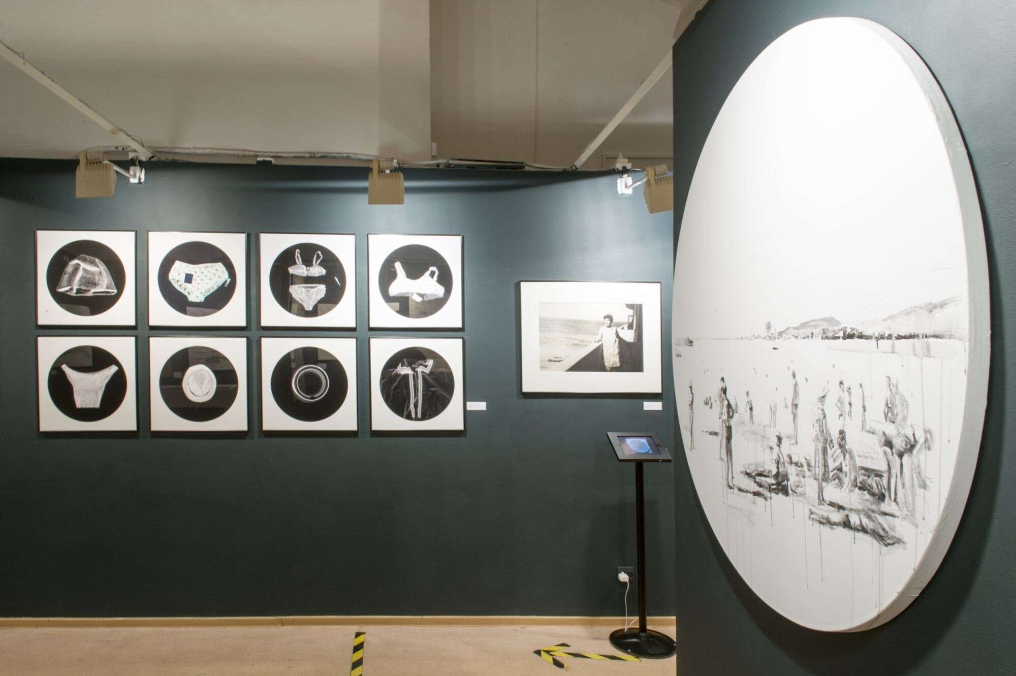 The exhibition includes photographs, readymade objects, paintings, and graphic works, all of them set up in the museum space as conceptual art installations.