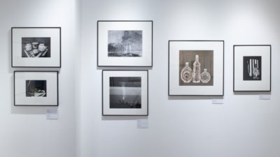 Несмотря на разнообразие методов, в представленных работах можно выявить и точки соприкосновения. Так, фотограммы петербургского автора Александра Китаева созвучны отпечаткам европейских мастеров — Андре Фажа и Джулиано Трамонтини. Их объединяет желание передать фактуру поверхности предмета. В результате кадрирования стекло вазы или стакана превращается в абстрактную композицию.