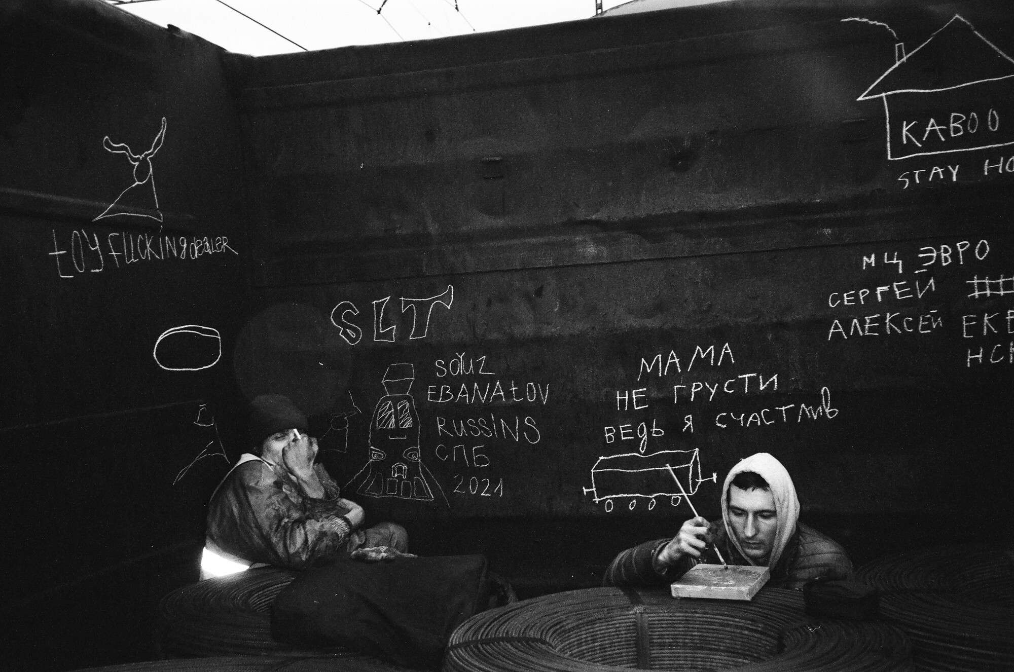Viktor Zabuga’s camera captures figures from Saint Petersburg’s underground art scene. His photographs, true to an anarchic spirit, convey the romance and freedom of activists escaping conventions and the establishment. Another facet of Zabuga’s photographic reality is the urban environment and its elements: cityscapes, graffiti, and street landscapes.