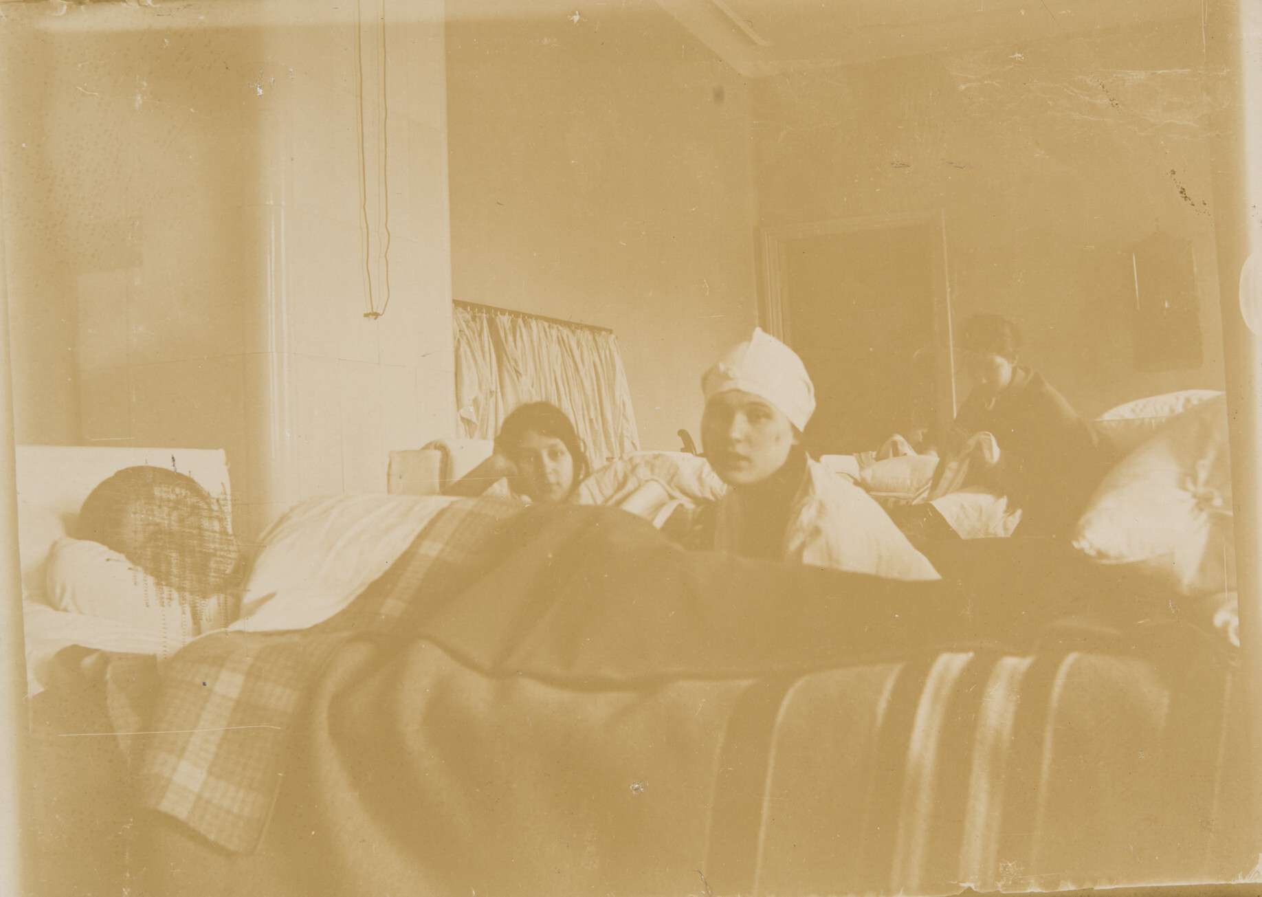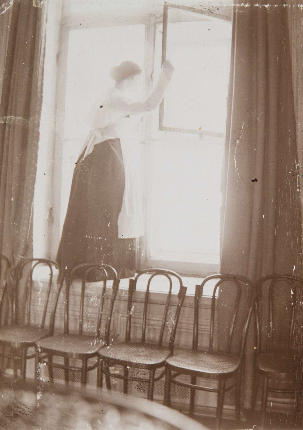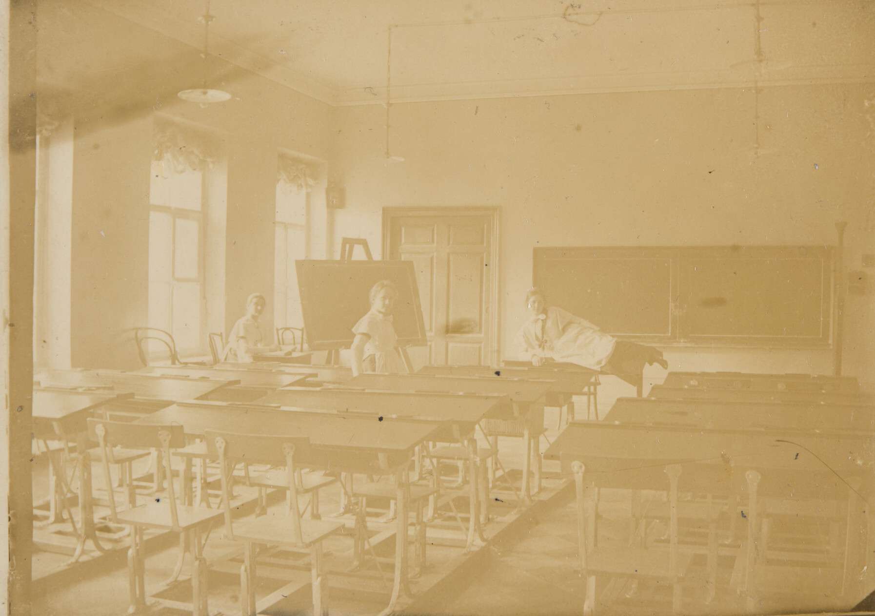 Informal portraits of institute students are a rather rare phenomenon. The amateur photographs in this album were taken in the 1910s. The pages contain group and individual portraits of teachers and students, as well as views of interior spaces: classrooms, dormitories, and panoramas of the courtyard. The ease with which the young women pose suggests a sense of trust toward the photographer — likely someone from within their circle.