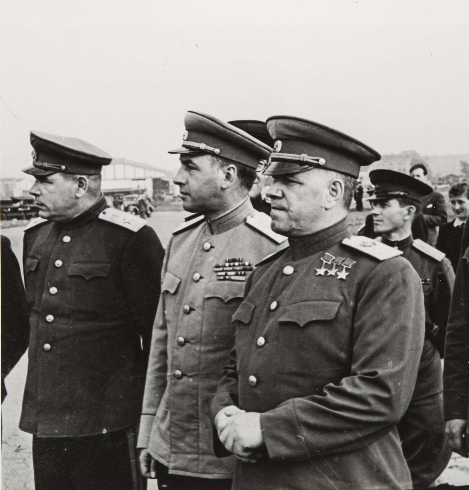 Маршал Советского Союза Г.К. Жуков, генерал армии А.И. Антонов, маршал авиации Ф.Я. Фалалеев
