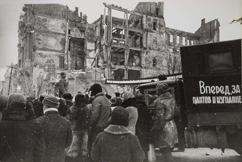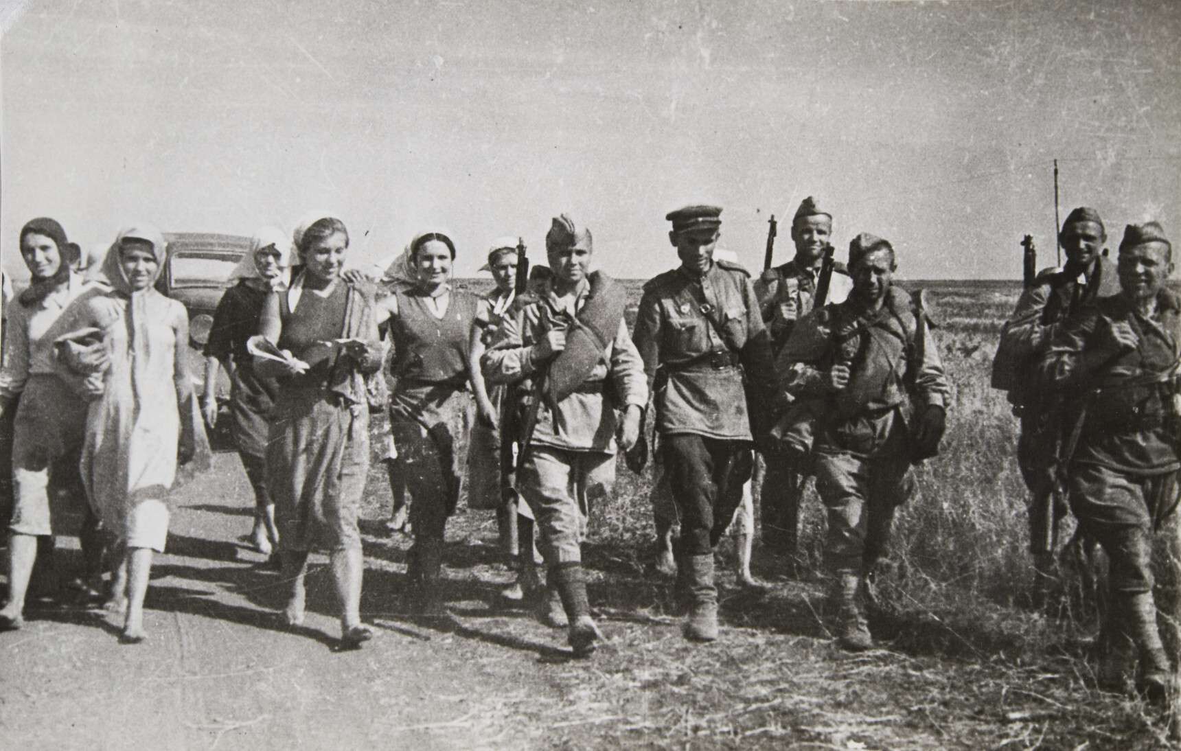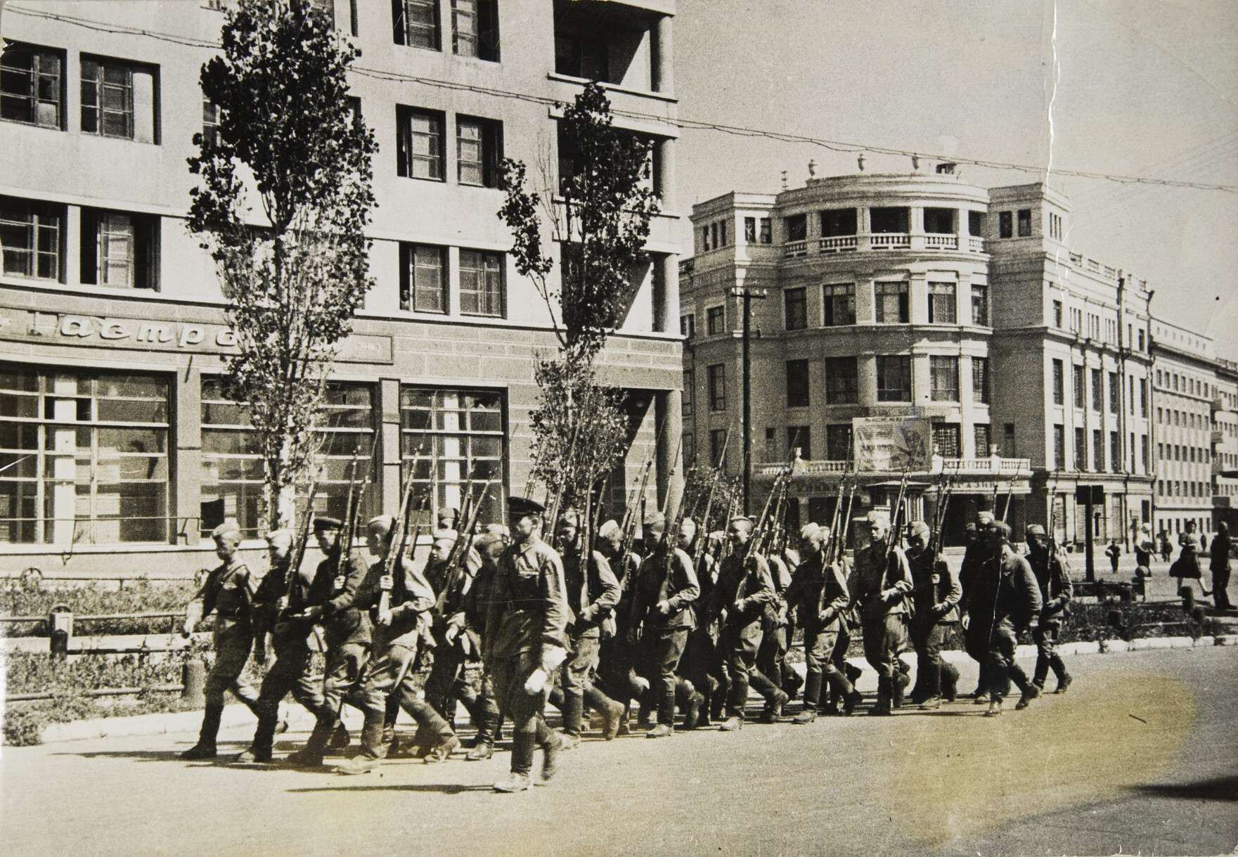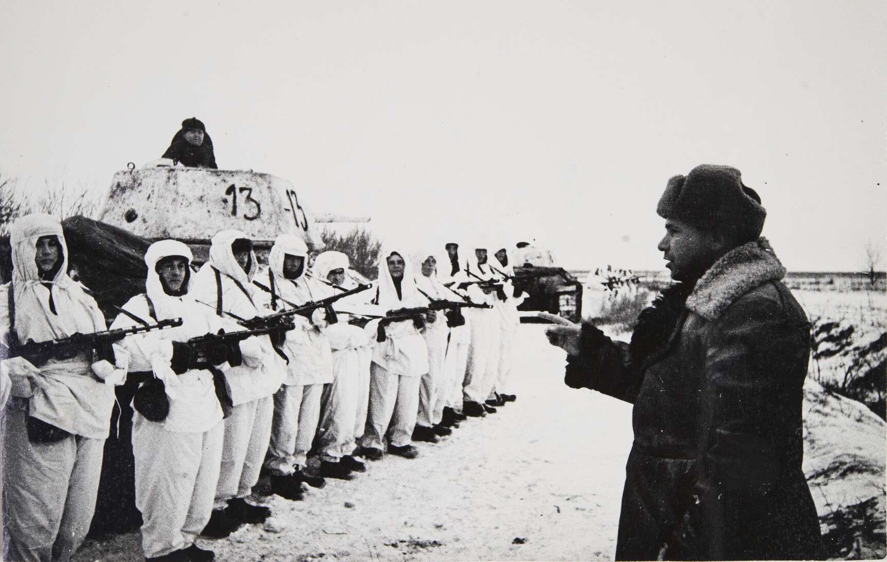 Новое пополнение 99 танковой бригады. Сталинградцы, вступившие в ряды Красной армии, вставшие на защиту родного города в день принятия присяги