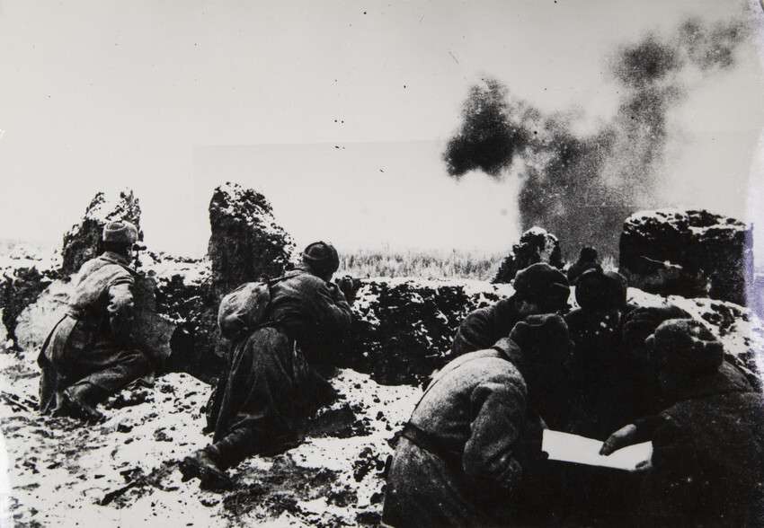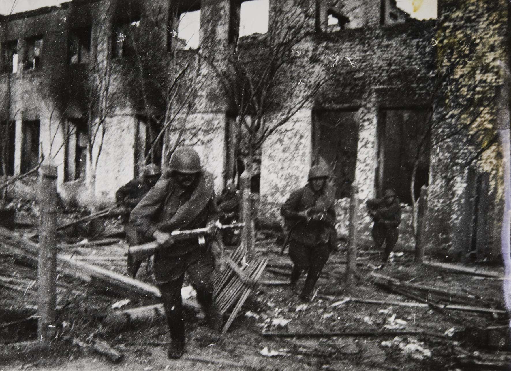 Стрелковое подразделение ведет уличный бой на Южной окраине Сталинграда