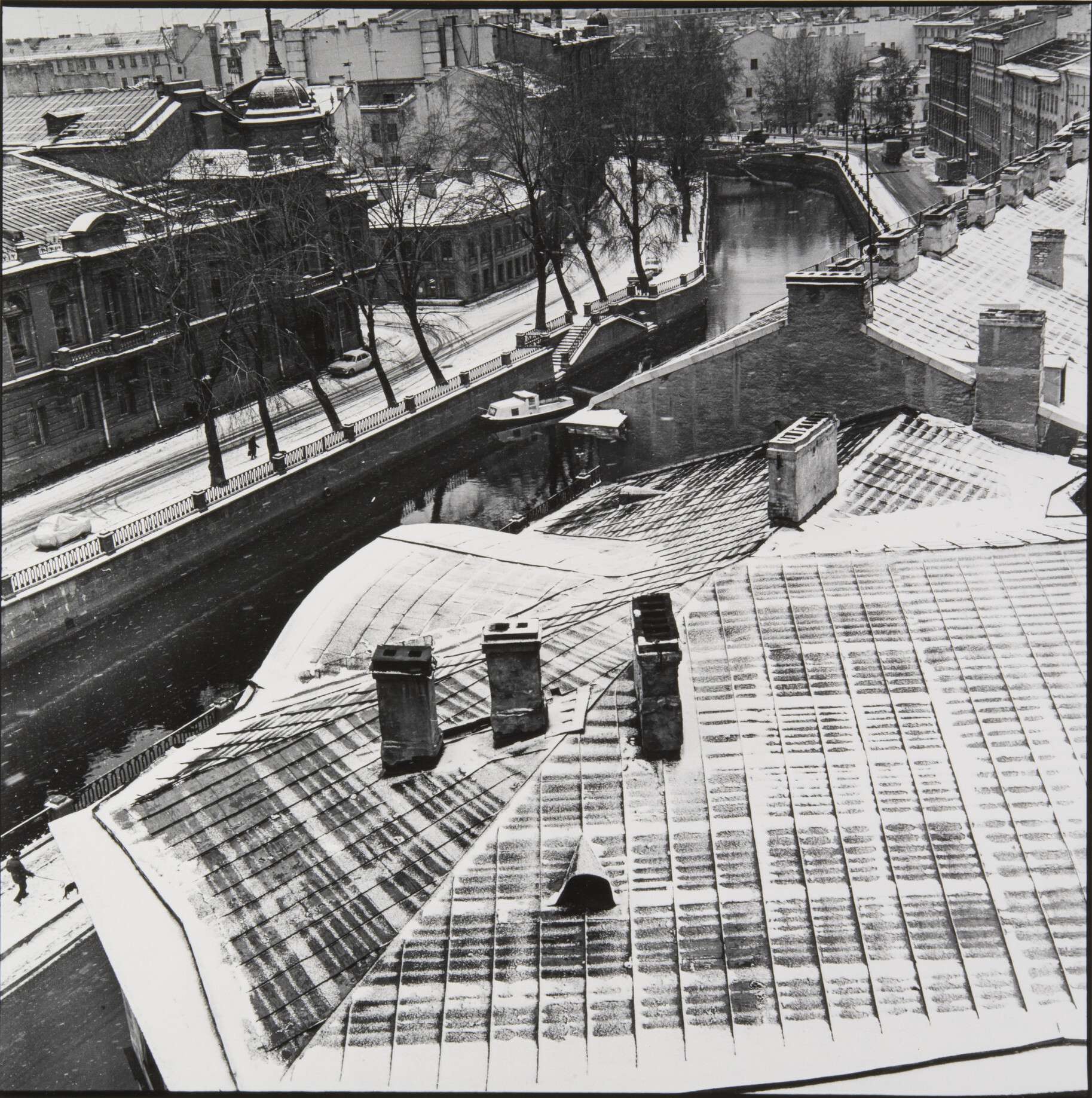 Ключевой фигурой в этом сюжете является Илья Наровлянский, снимавший город для открыток и альбомов. Архитектурная съемка предполагала обстоятельный подход и подготовку — велась со штативом, на крупногабаритную технику. Но было бы неверно сводить работу Наровлянского к простой фиксации — через детали и едва заметные нюансы город на его фотографиях поэтично оживает.
