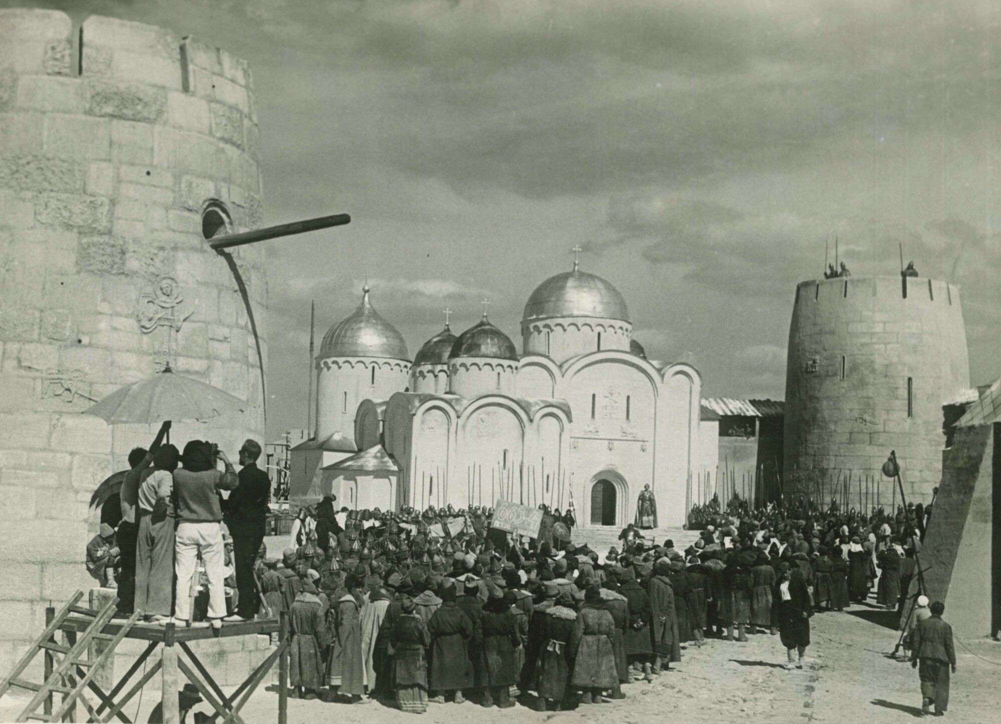 Рабочий момент съемок фильма «Александр Невский». Новгородское вече, 1938 ©НГОМЗ