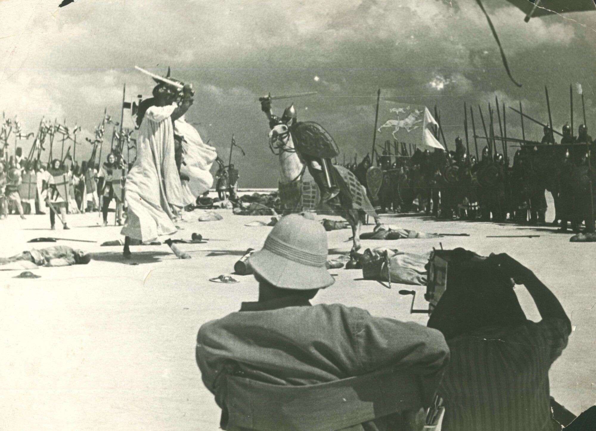 Рабочий момент съемок фильма «Александр Невский». Атака крестоносцев, 1938 ©НГОМЗ