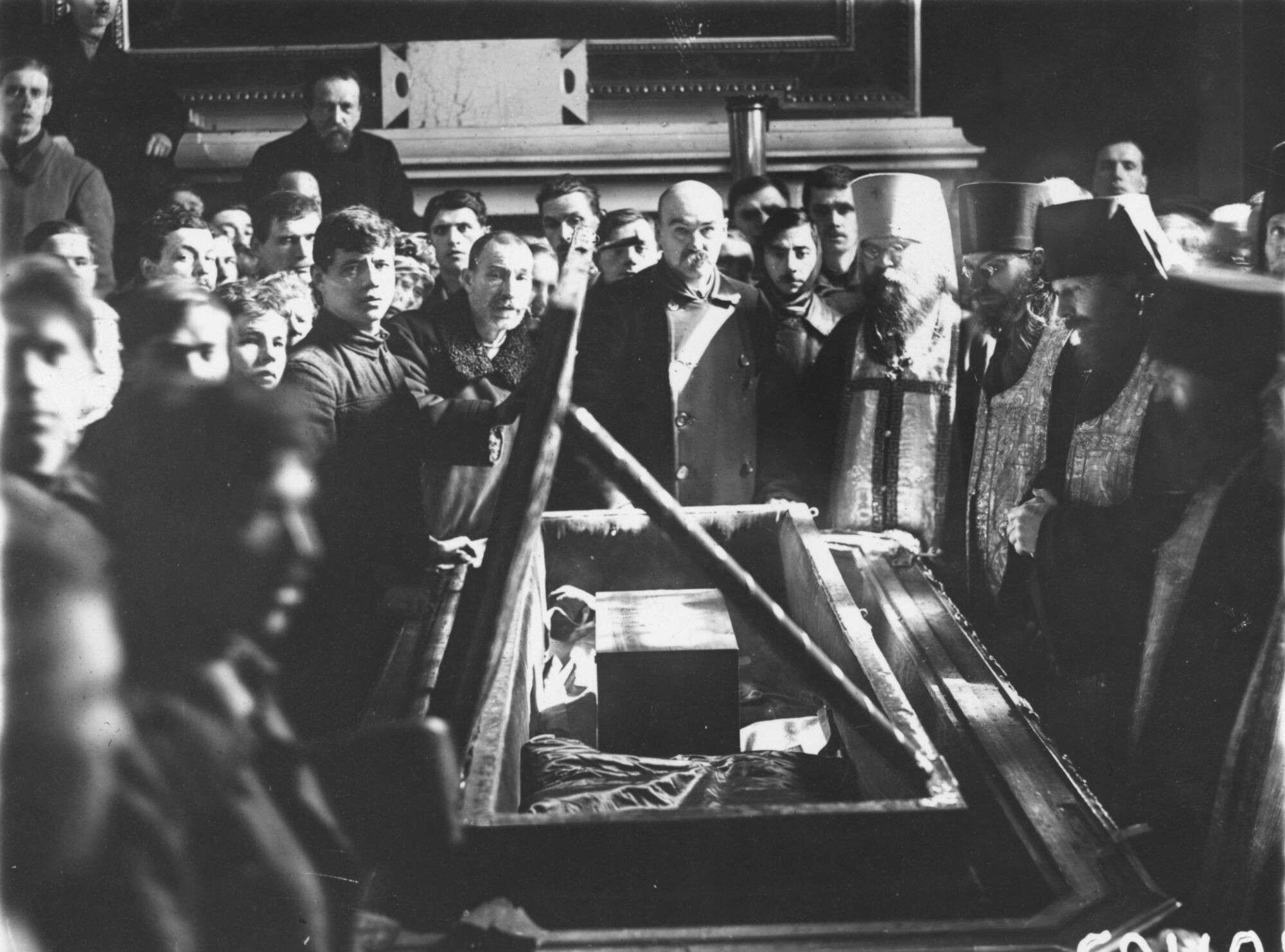 Вскрытие раки с мощами Александра Невского в Свято-Троицкой Александро-Невской лавре. Петроград, 1922 ©РГАКФФД