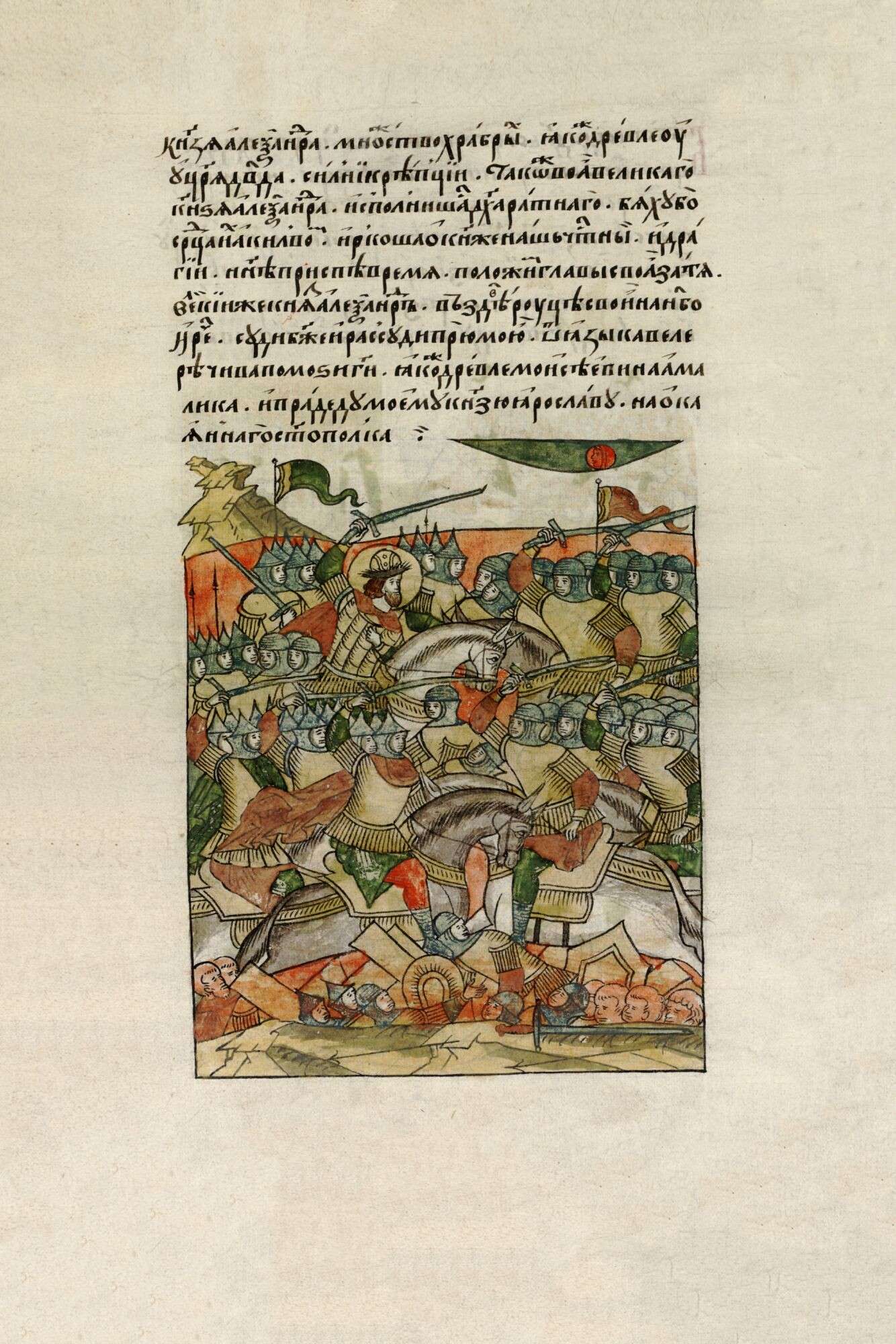 15 июля 1240 года при впадении Ижоры в Неву 19-летний Александр Ярославович разбил шведское войско герцога Биргера, получив прозвище Невский (которое, по отношению к нему, впервые встречается только с XV века). 5 апреля 1242 года нанес поражение крестоносцам в Ледовом побоище на льду Чудского озера. В 1246 году провел кампанию против литовцев, одержав победы – у Торопца, Жижицкого озера и Усвята.