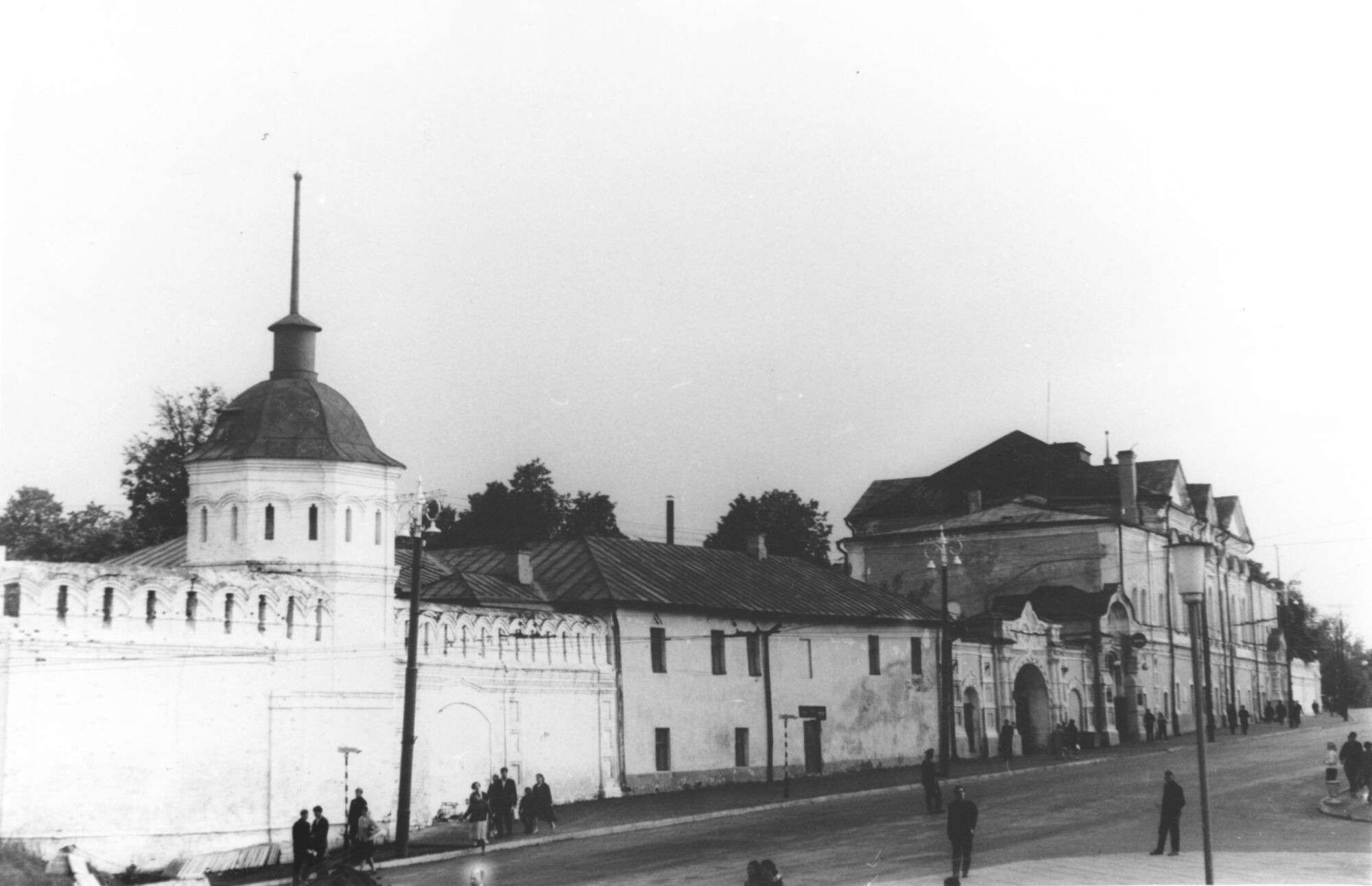 Часть стены Богородице-Рождественского монастыря с башней и трапезный храм Рождества Христова. Владимир, 1969 ©ЦГАКФФД