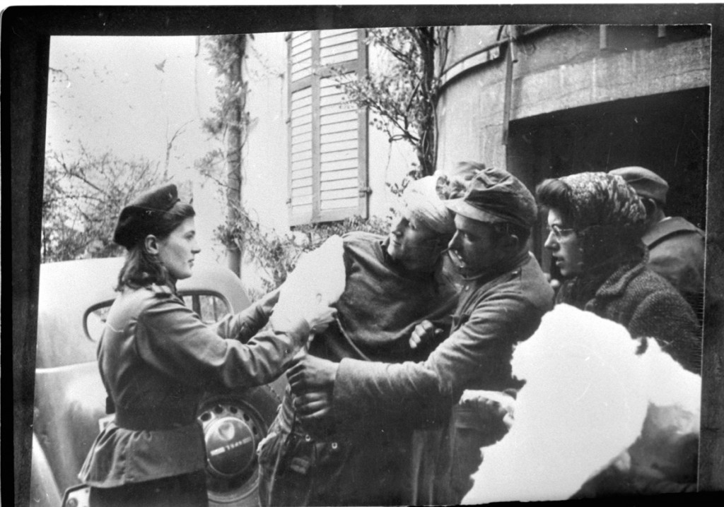 Санинструктор медико-санитарной части Нечипорчукова оказывает помощь раненым при форсировании реки Одер