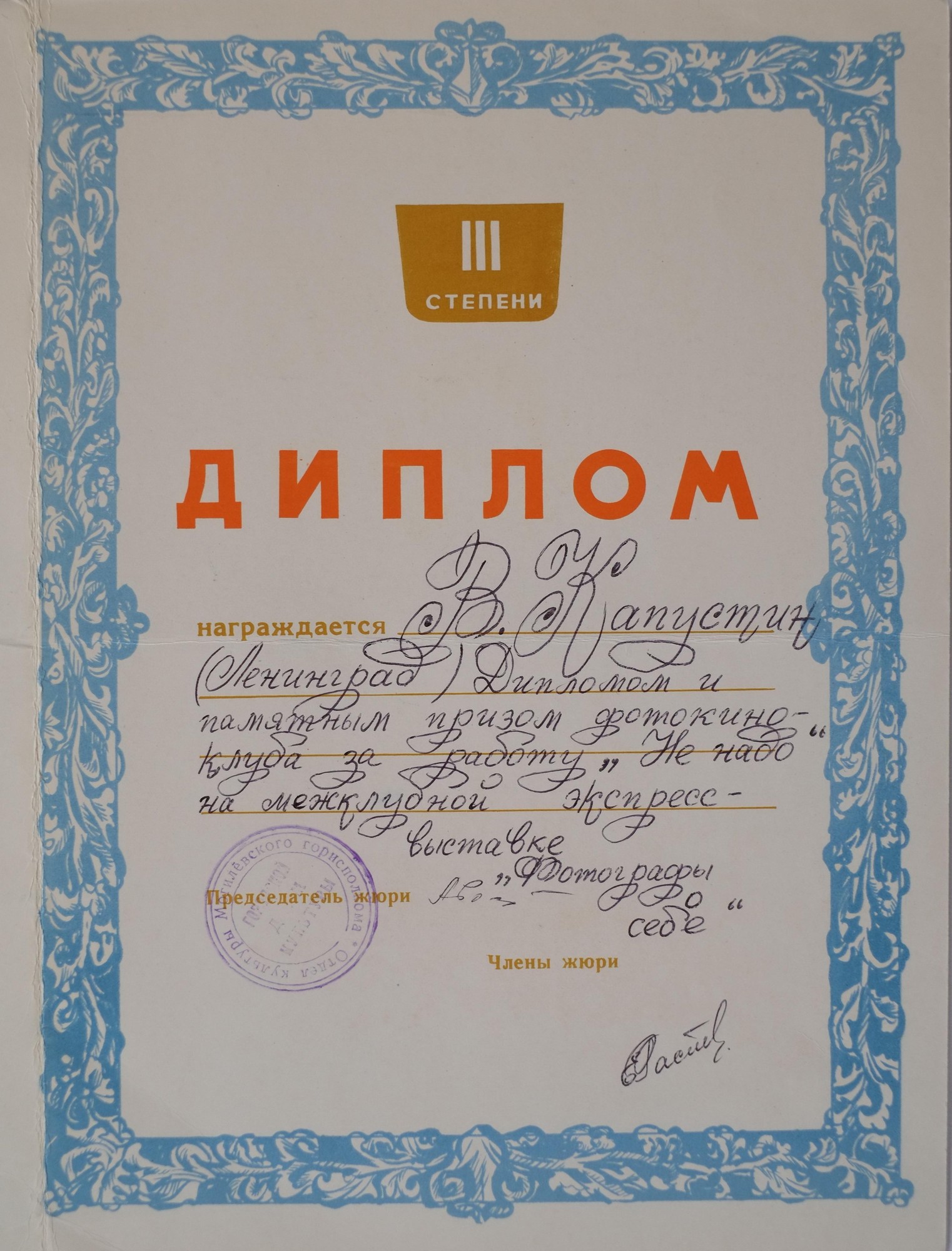 21 февраля — Выставка П. Иванова. Магазин «Фотокинотовары № 9», Литейный проспект, д. 61, г. Ленинград. 25 апреля — Выставка Г. Ткалича. Магазин «Фотокинотовары № 9», Литейный проспект, д. 61, г. Ленинград. Июнь — IV Отчетная выставка клуба. ДК им. К. Маркса, Ленинград. Запрещена цензурой, не состоялась. 10 июля — Выставка Б. Михалёвкина. Магазин «Фотокинотовары № 9», Литейный проспект, д. 61, г. Ленинград. 26 сентября — Выставка А. Пена. Магазин «Фотокинотовары № 9», Литейный проспект, д. 61, г. Ленинград. 23 ноября — Творческая встреча с Б. Смеловым. 28 ноября — Выставка В. Чуркина. Магазин «Фотокинотовары № 9», Литейный проспект, д. 61, г. Ленинград. 31 ноября — Творческая встреча с В. Смирновым. Фотоклуб «Любитель», ДК им. Горького, г. Ленинград.