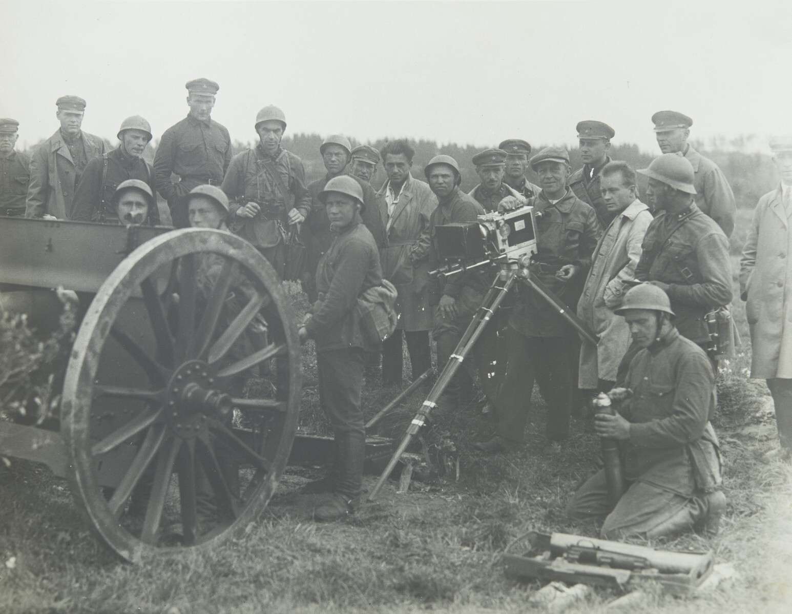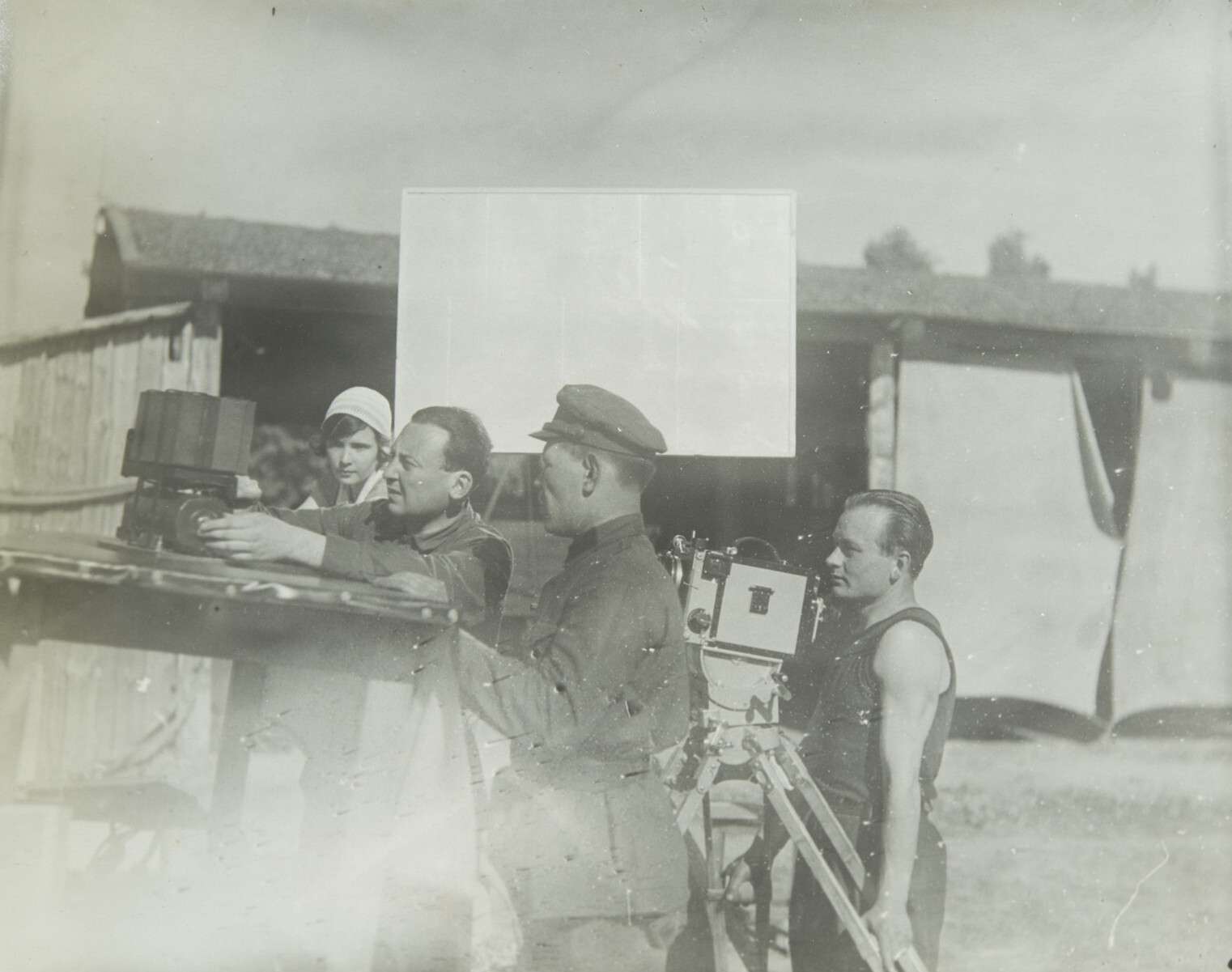 Рабочий момент съемок фильма «Высота 88,5», 1931