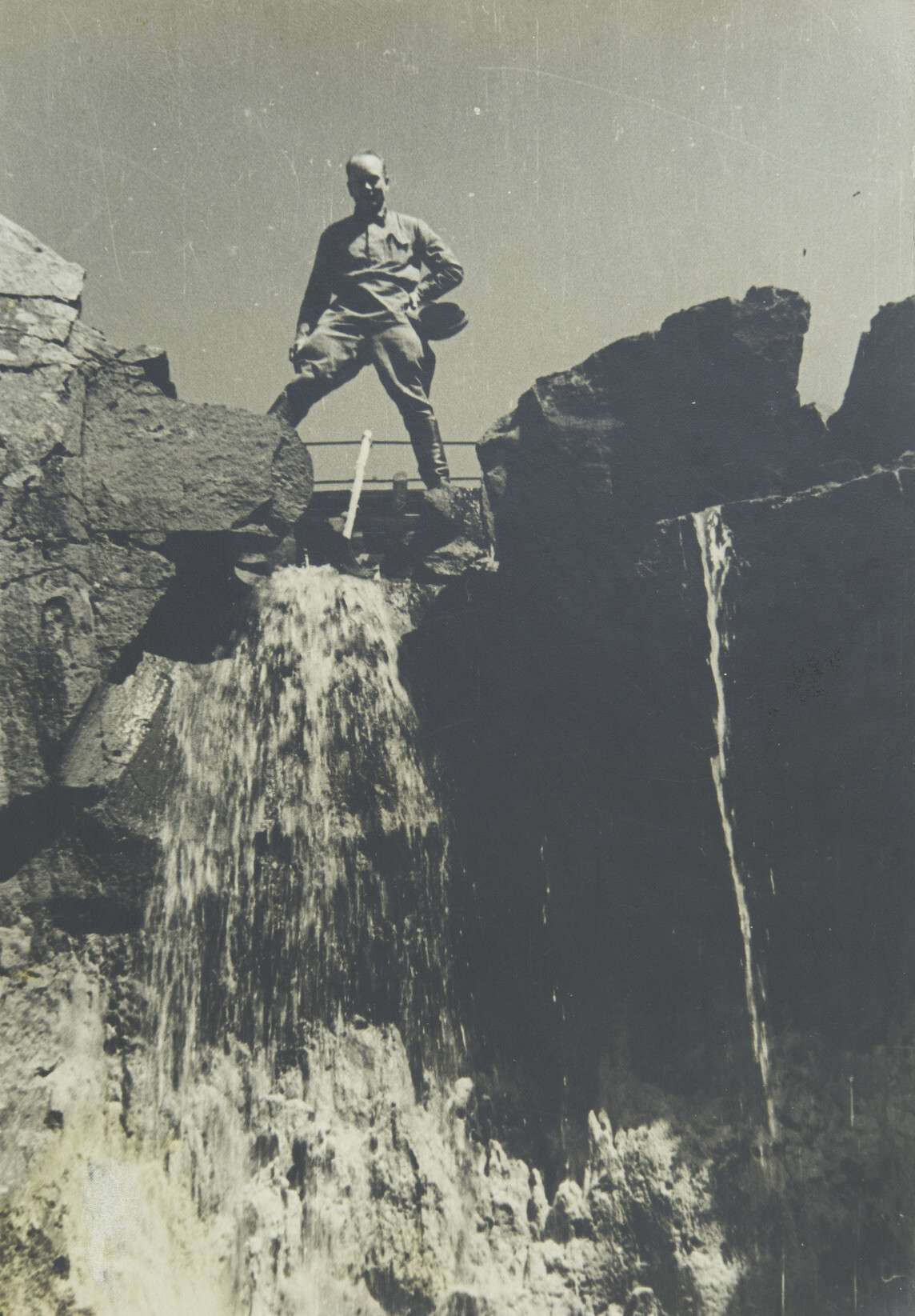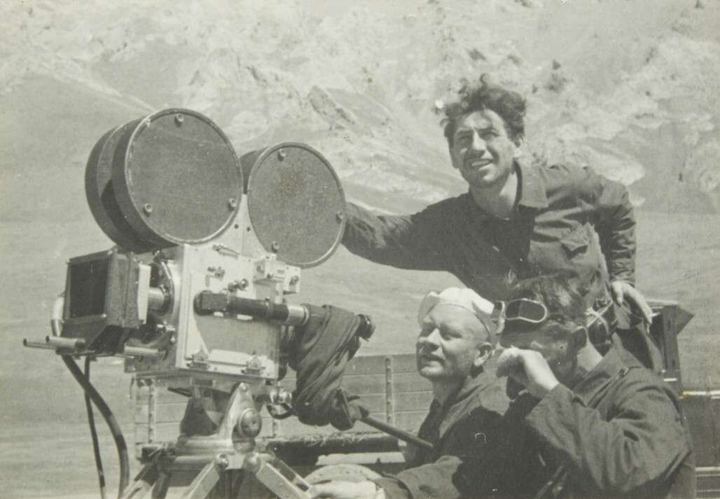 Рабочий момент съемок фильма «Высота 88,5». Георгий Максимов за камерой, 1931