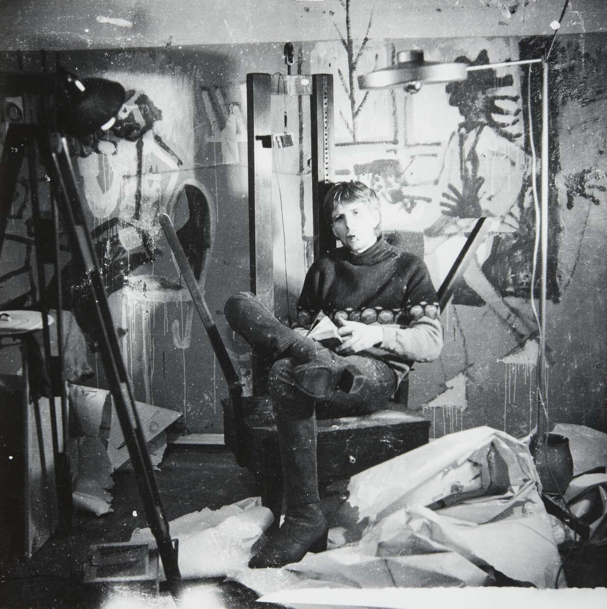 Михаил Шемякин в своей мастерской дает интервью журналисту, 1978