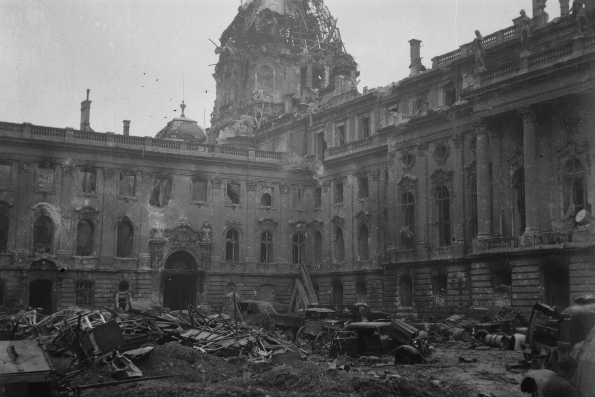 Вид разрушенного королевского дворца в Будапеште