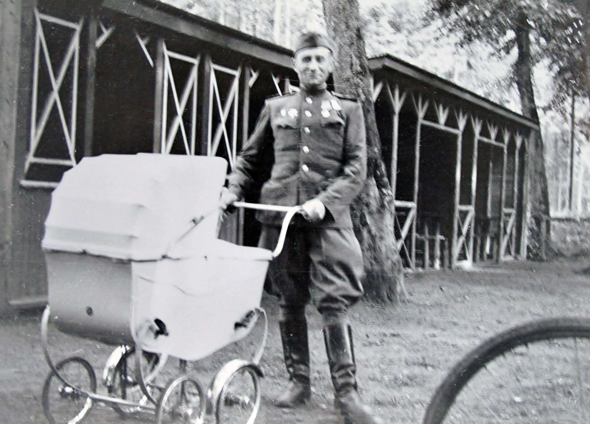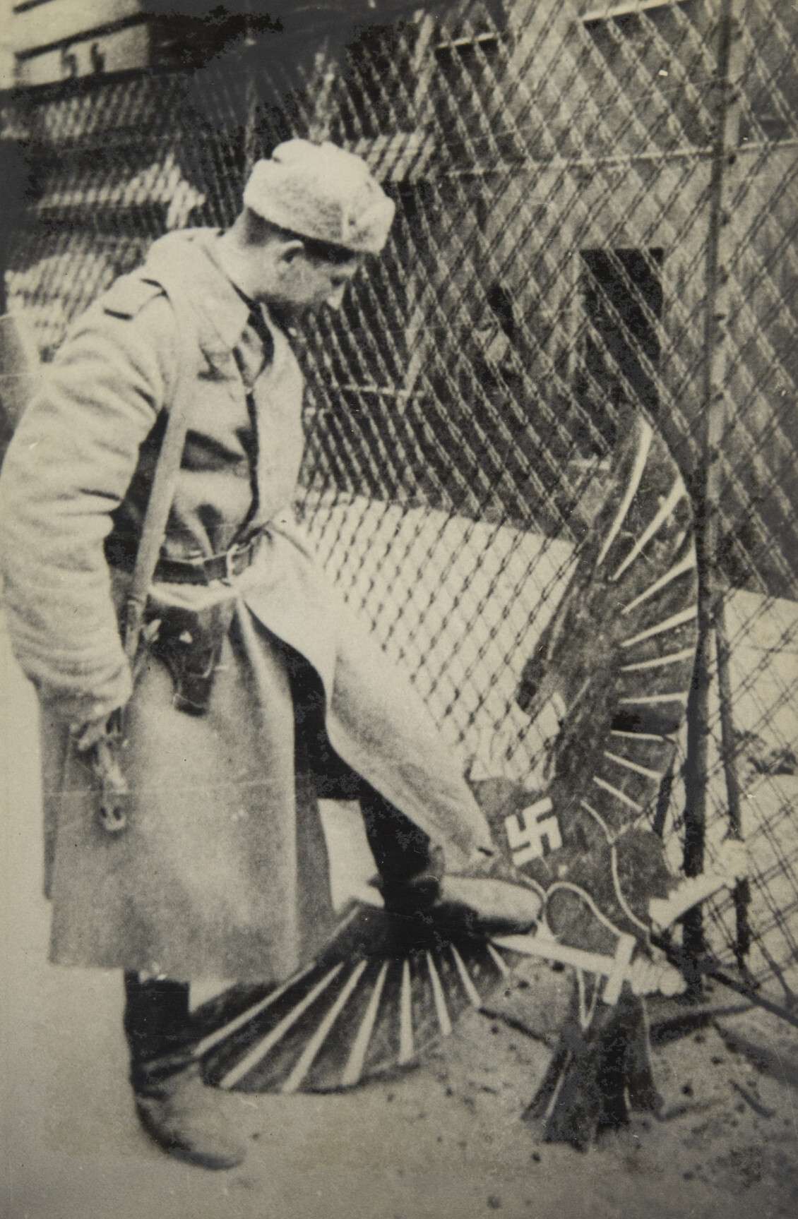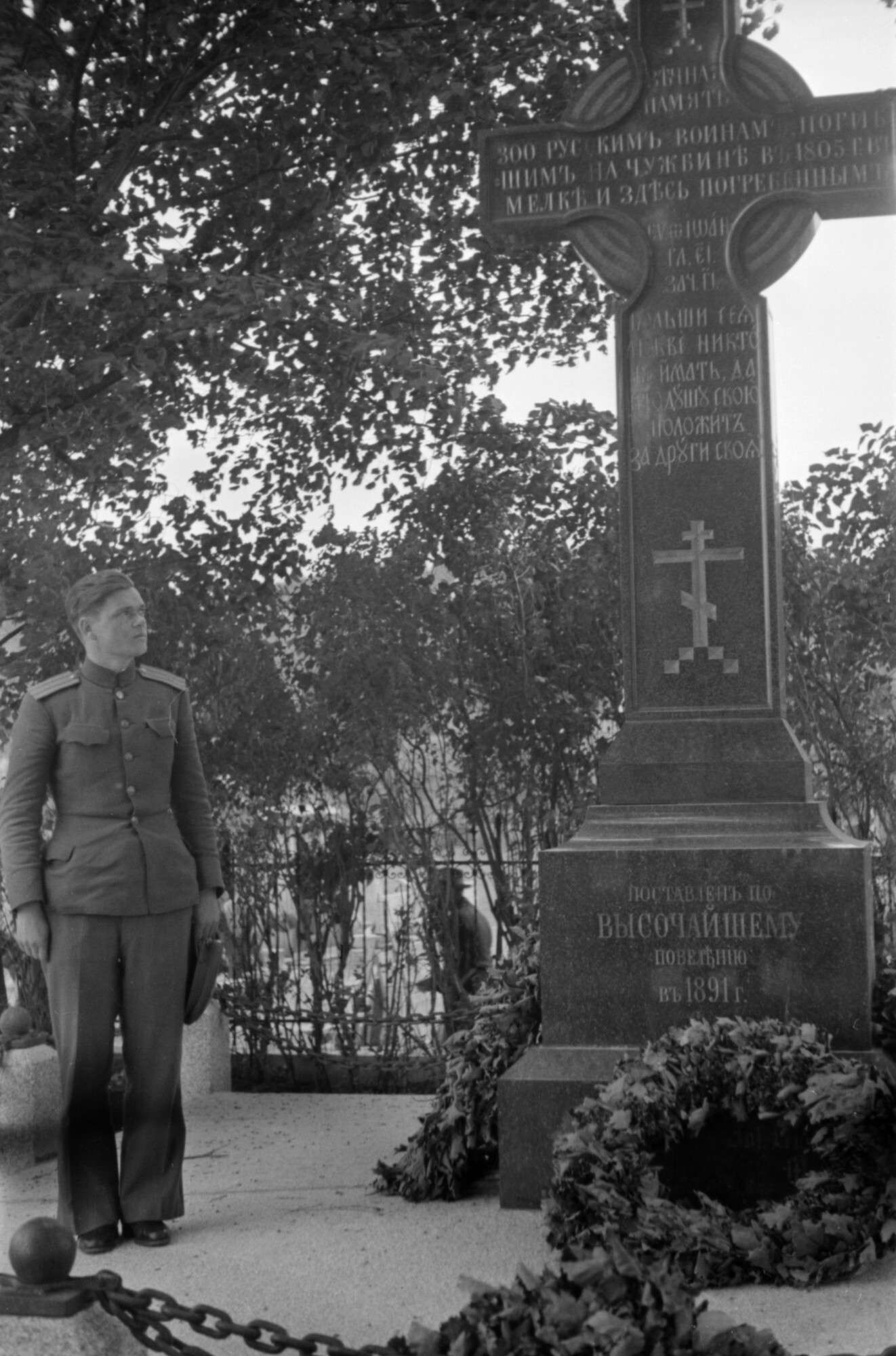 Часовой С.Ф. Ивлев у пограничного столба, отделяющего СССР от Восточной Пруссии