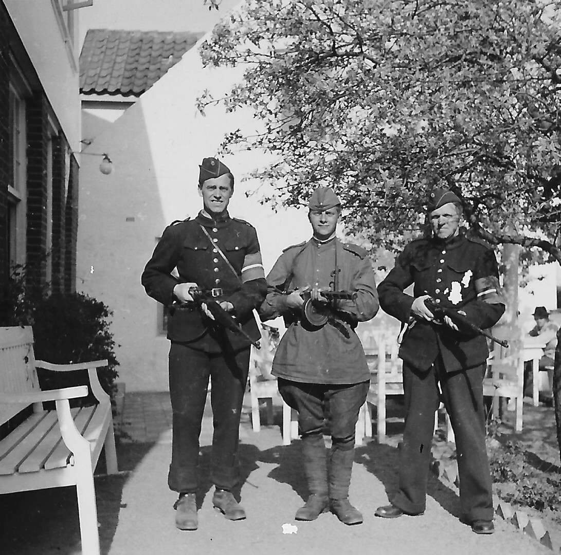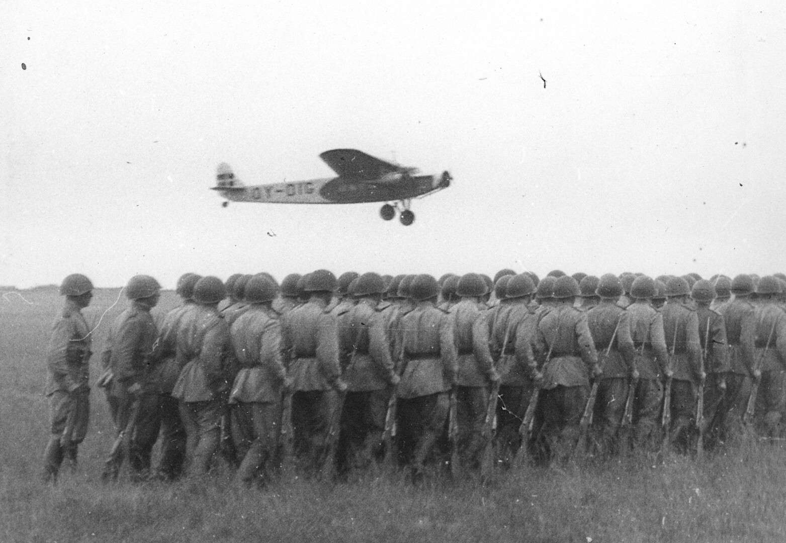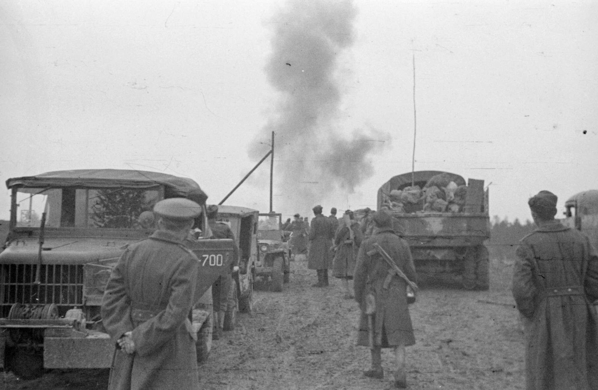 Часовой С.Ф. Ивлев у пограничного столба, отделяющего СССР от Восточной Пруссии