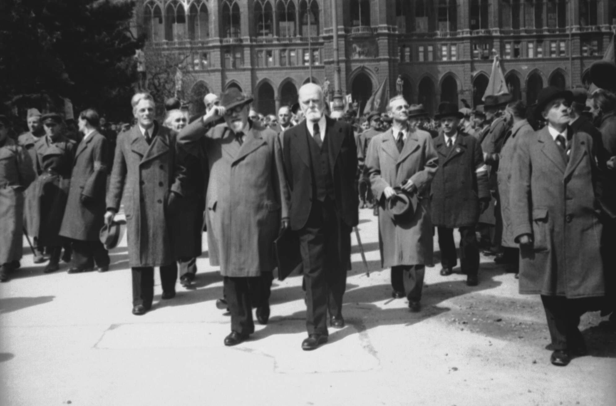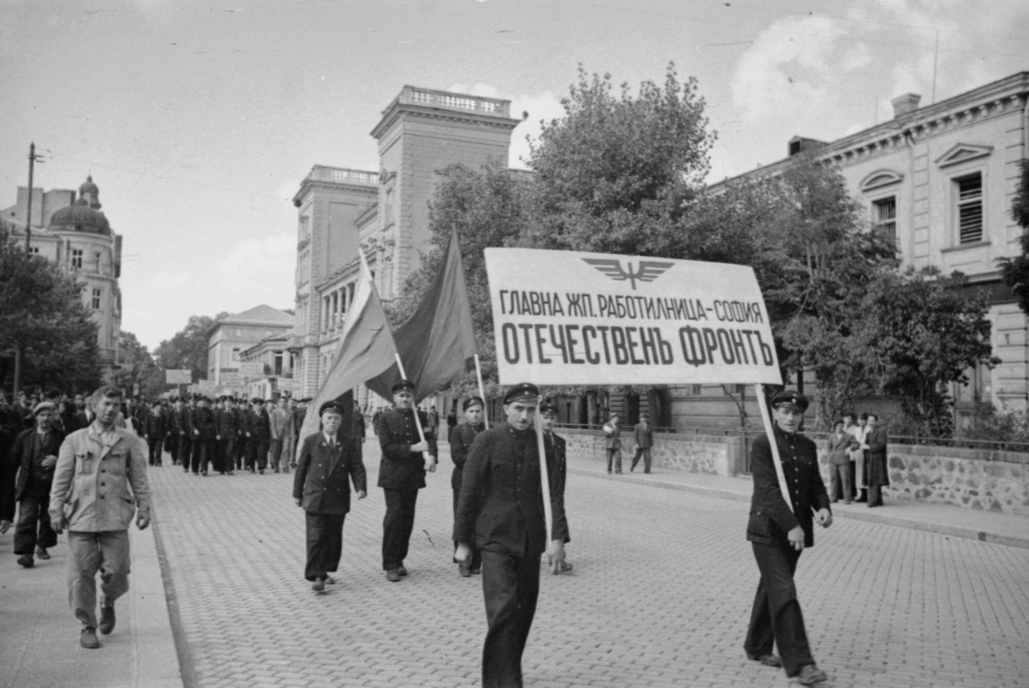 Демонстрация работников железнодорожного транспорта Софии, вышедших на улицы города в знак признательности советским войскам