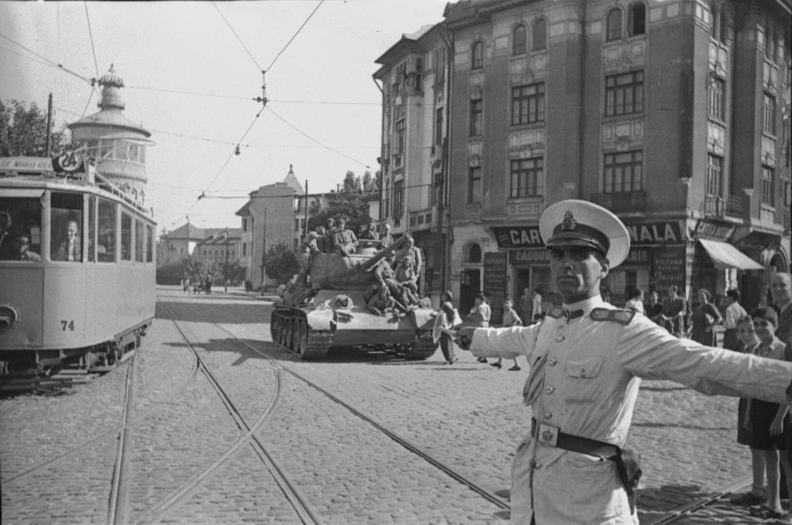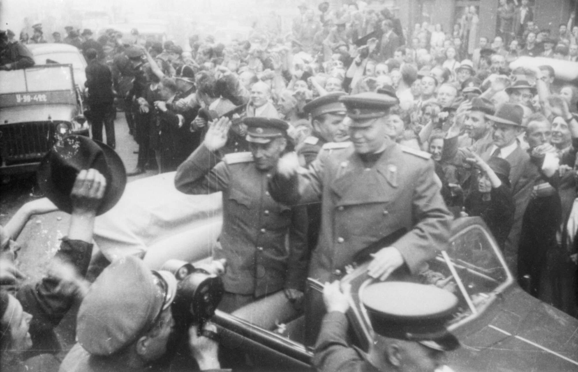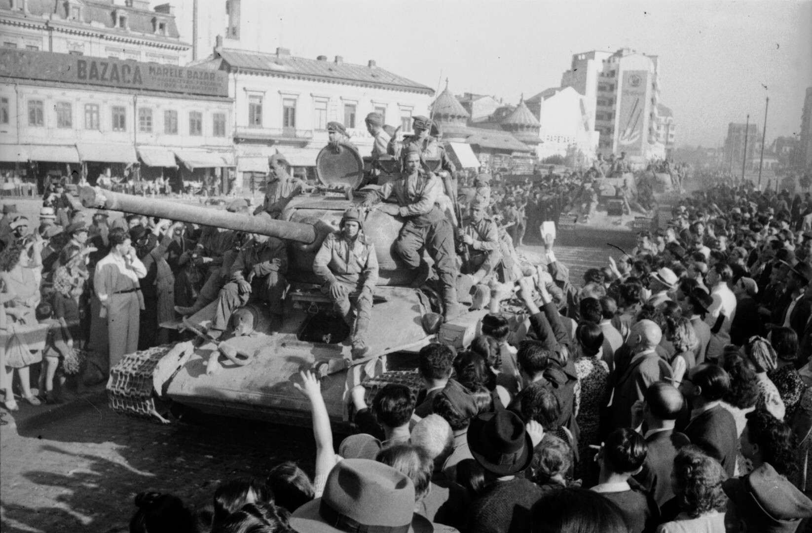 Жители Софии приветствуют части Красной армии