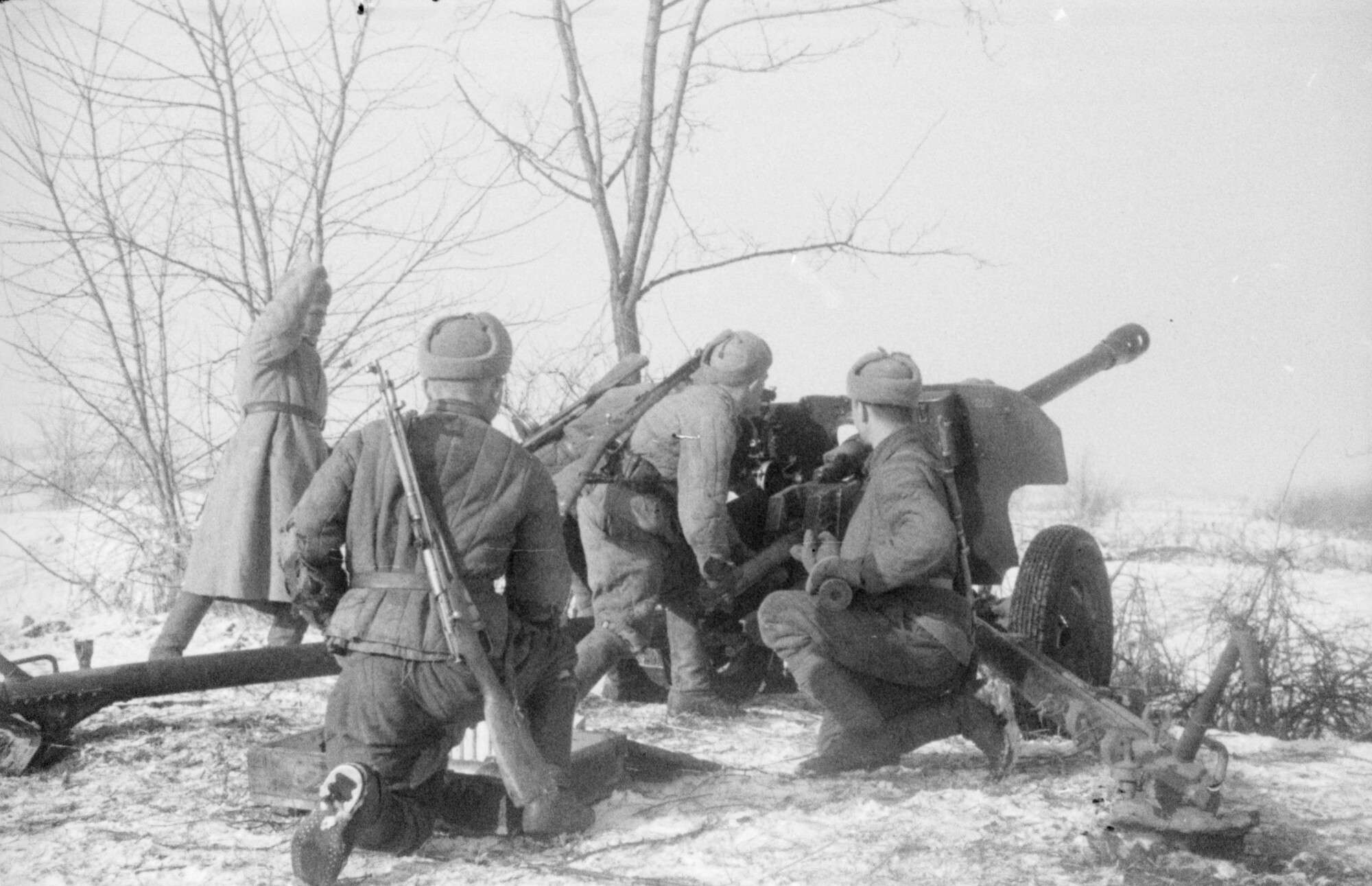Батарея старшего лейтенанта А. Харюшина атакует немецкие укрепления близ Белграда