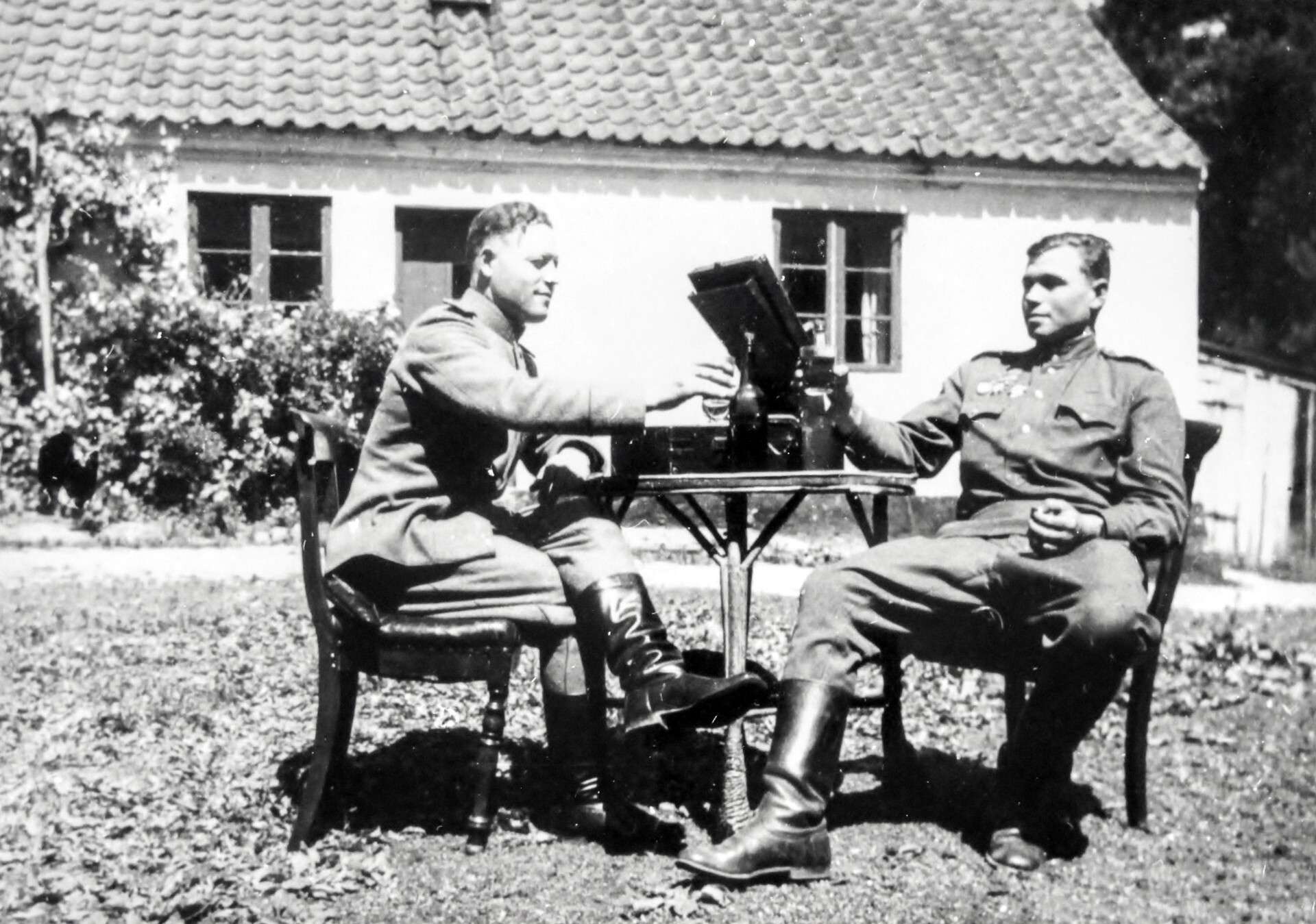 Я вернулся по коридору и открыл крючок на запертых воротах. Когда открыл их, вижу, через улицу наши, старший лейтенант Киселев. Кричу им: