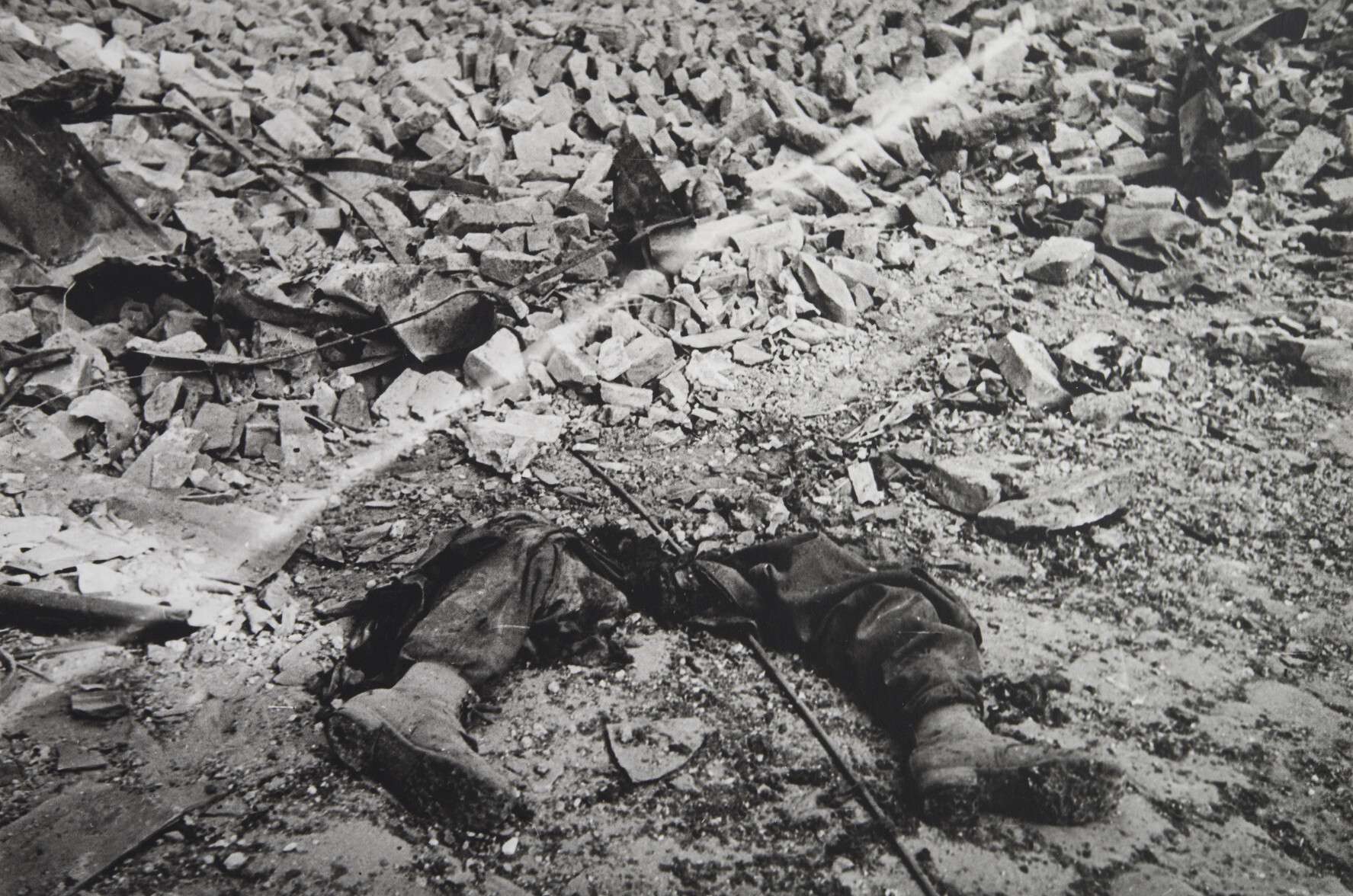 Огороженные камнями, лежат внизу на мостовой три немца. Старуха показала и ушла. Я бросил гранату в окно. Взорвал пулемет и двух немцев, а третий уполз, или его утащили. Стал выходить из комнаты. В это время по лестнице со второго этажа бросили в коридор гранату, но она мне не повредила — я стал за угол. Только в коридоре все дымом заволокло.