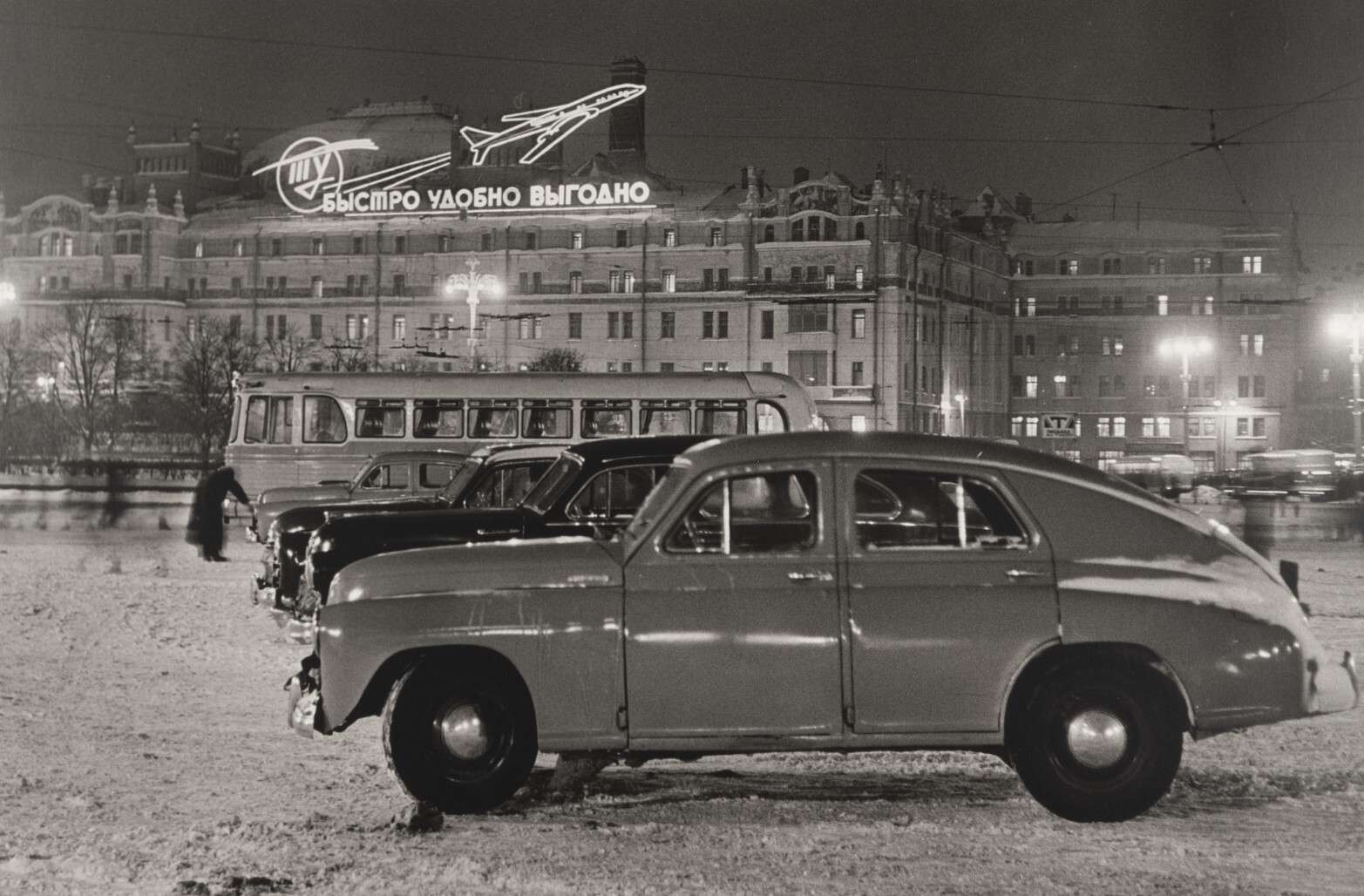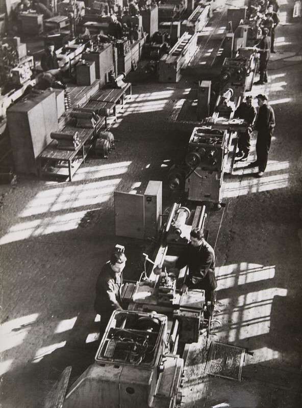 Evzerikhin’s Moscow of the 1950s–1960s is perhaps less cheerful but more majestic and austere; his perfectly composed and carefully considered images show the construction of Stalinist high-rises, the work and power of factories, new automobiles, and people at work.