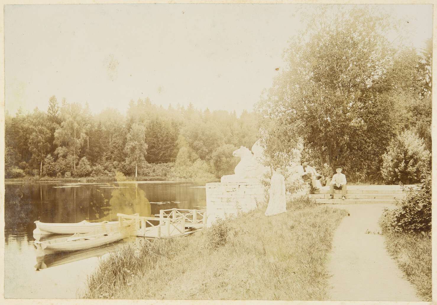 неизвестный.  Пейзаж. Марфино. Пруд и пристань со скульптурами грифонов 1880-е