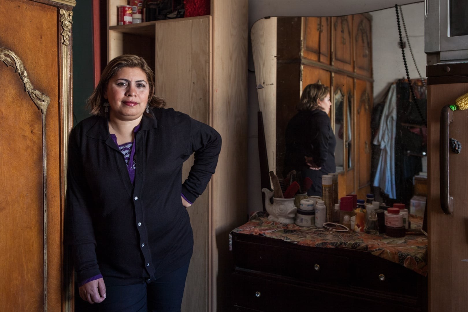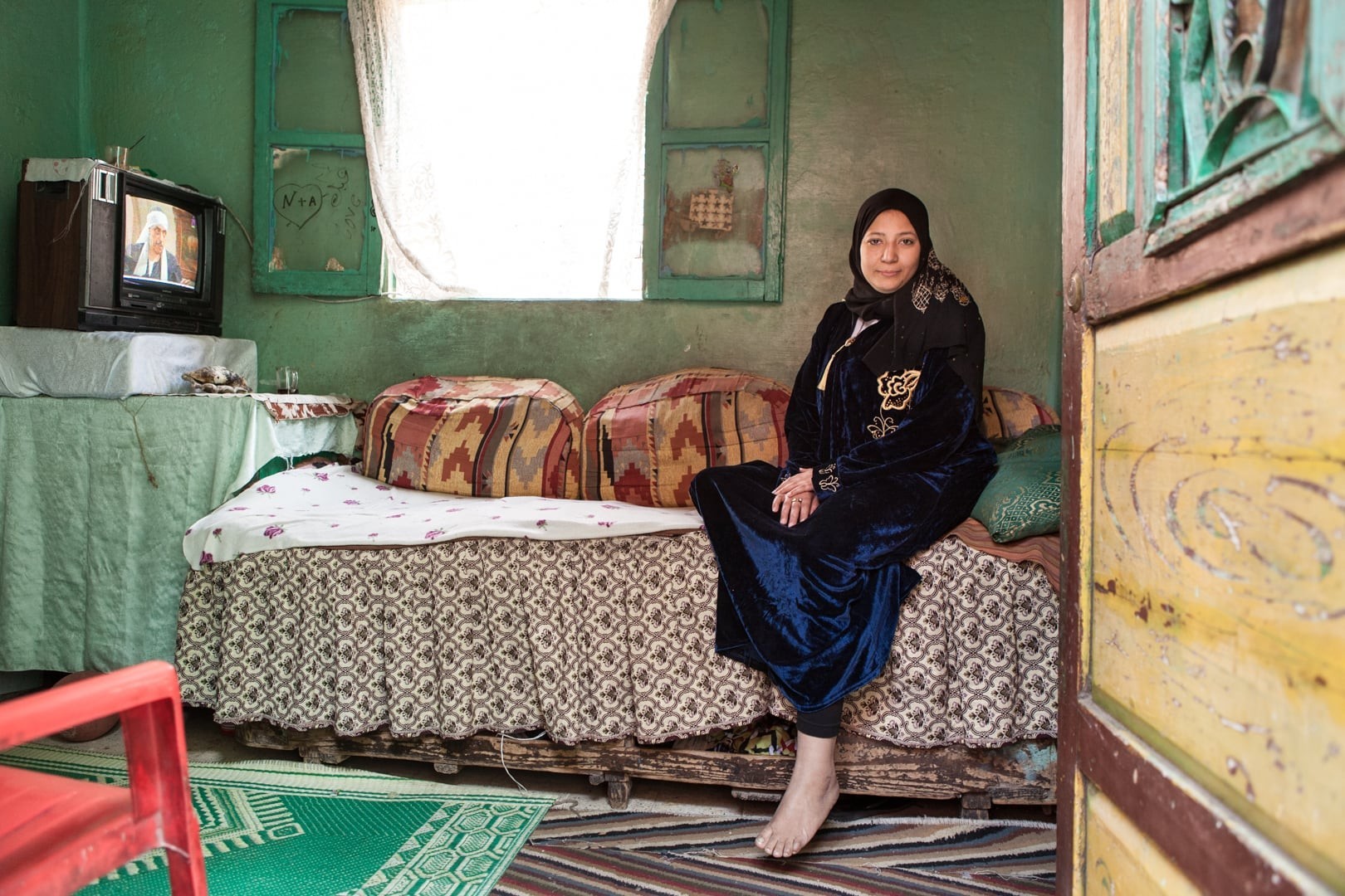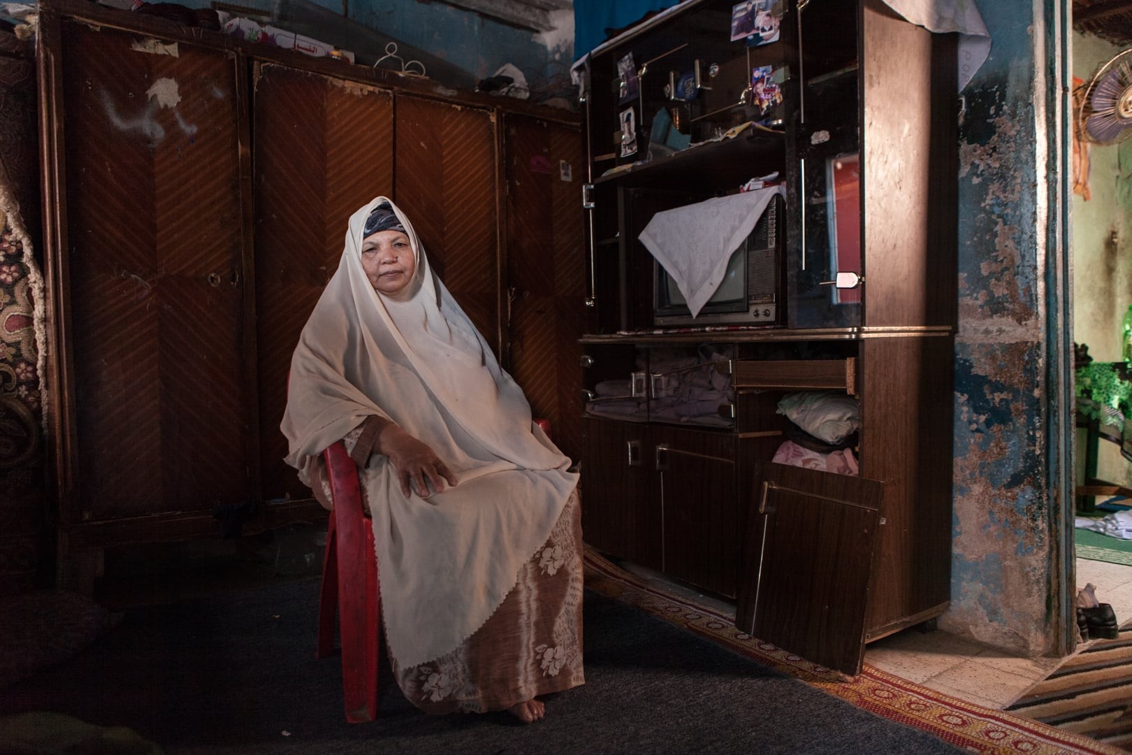 Als ich sie porträtierte war Mona 42 Jahre alt. Sie lebt mit ihrem Mann und ihren zwei Töchtern in Imbaba in Kairo. Sie ist Köchin und Putzfrau. Sie erzählte mir: