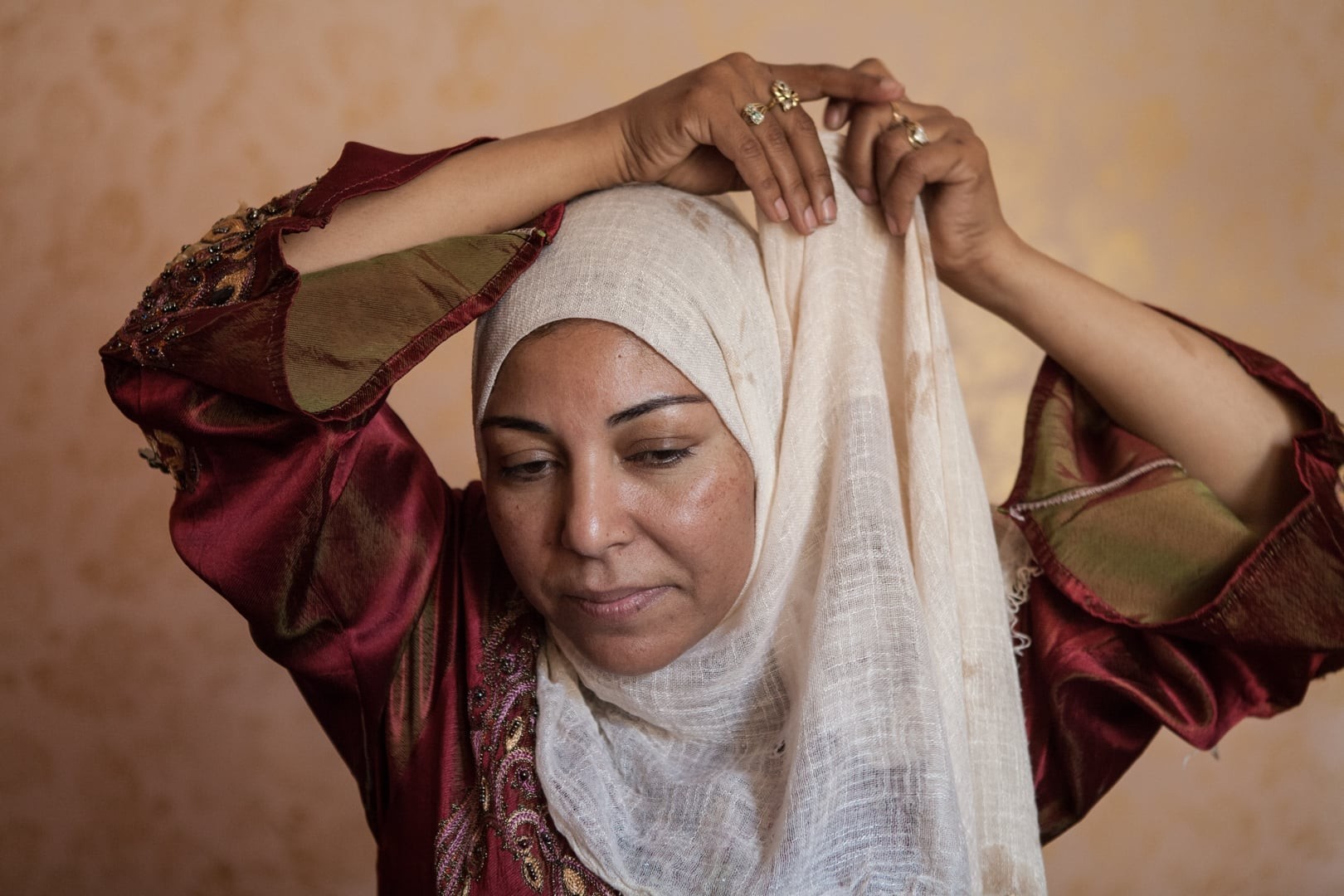 «Zum Glück kann man sich aber trotz niqab weiterhin Gedanken machen! In der islamischen Gesellschaft darf nur der Mann sich scheiden lassen. Jetzt aber erlaubt das Gesetzt auch der Frau, die khula** zu beantragen: Sie kann sich vom Mann scheiden lassen, muss aber ein Papier unterschreiben, mit dem sie auf alle finanziellen Ansprüche verzichtet. Mein Mann nahm mir alles weg, meinen Schmuck, mein Geld. Aber meine Tochter nicht, zum Glück! (lacht). Am Tag, als ich auszog, habe ich den Niqab abgelegt – noch vor der Scheidung. Was für eine Erleichterung.»