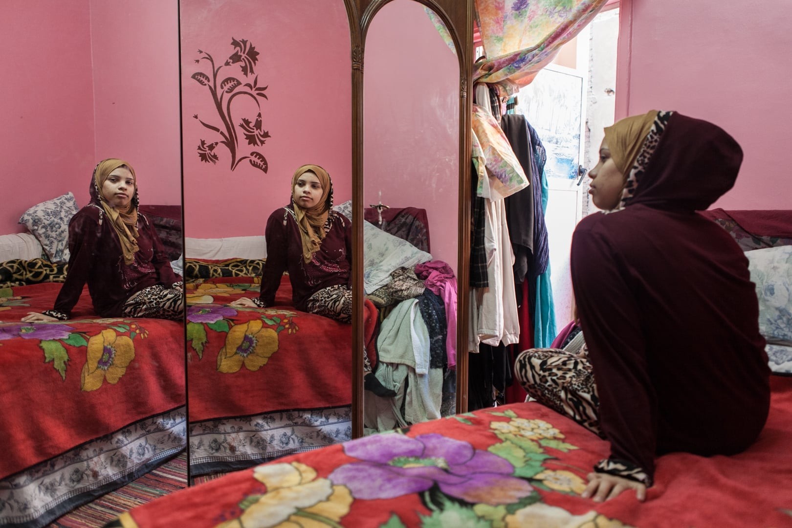 Als ich sie fotografierte, war Salma (ihr Name wurde geändert) 28 Jahre alt, Fernsehjournalistin, geschieden, und sie lebte in einer Wohngemeinschaft im Zentrum von Kairo. Sie hat eine sechsjährige Tochter, die bei ihrer Mutter in Alexandria lebte.