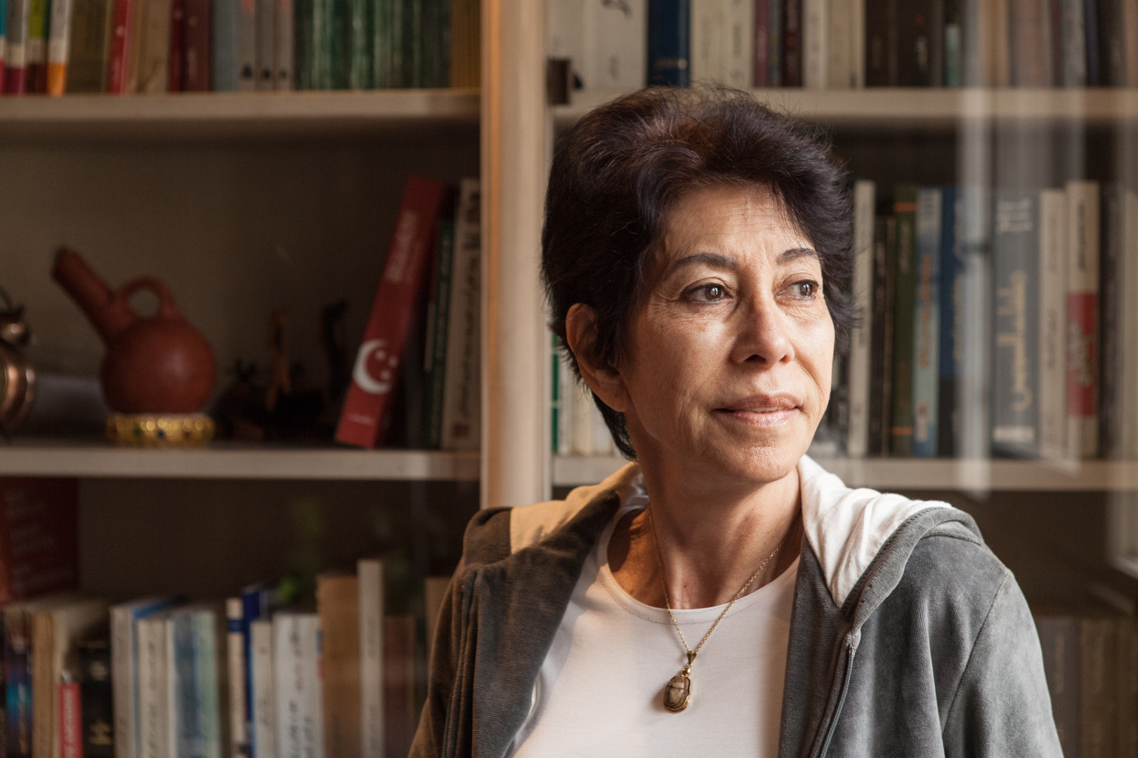 «Die ägyptische Frau denkt zuallererst an ihre Kinder. Dann an ihren Mann und den Haushalt. Erst am Ende denkt sie an sich selbst. Also muss sie es sich selbst vorwerfen, wenn sie ihre Rechte verliert: das Recht zu arbeiten, das Recht auf eine eigene Meinung ihrem Mann gegenüber. Dies ist leider das Schicksal vieler Frauen in Ägypten. Zum Glück aber nicht meines, denn ich lebe in einer Liebesehe. Ich arbeite, weil es mir gefällt und weil ich es brauche. Während der Revolution 2011 habe ich 18 Tage lang mit demonstriert, um mehr soziale Gerechtigkeit und Arbeit zu fordern. Seitdem hat sich zwar nichts geändert. Aber ich denke, wir müssen geduldig sein, sehr geduldig. Und wir müssen alle weiterhin Hand in Hand gehen.»
