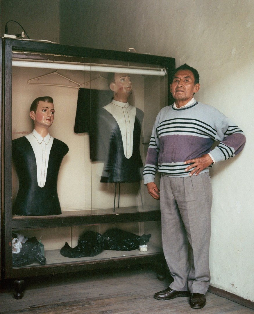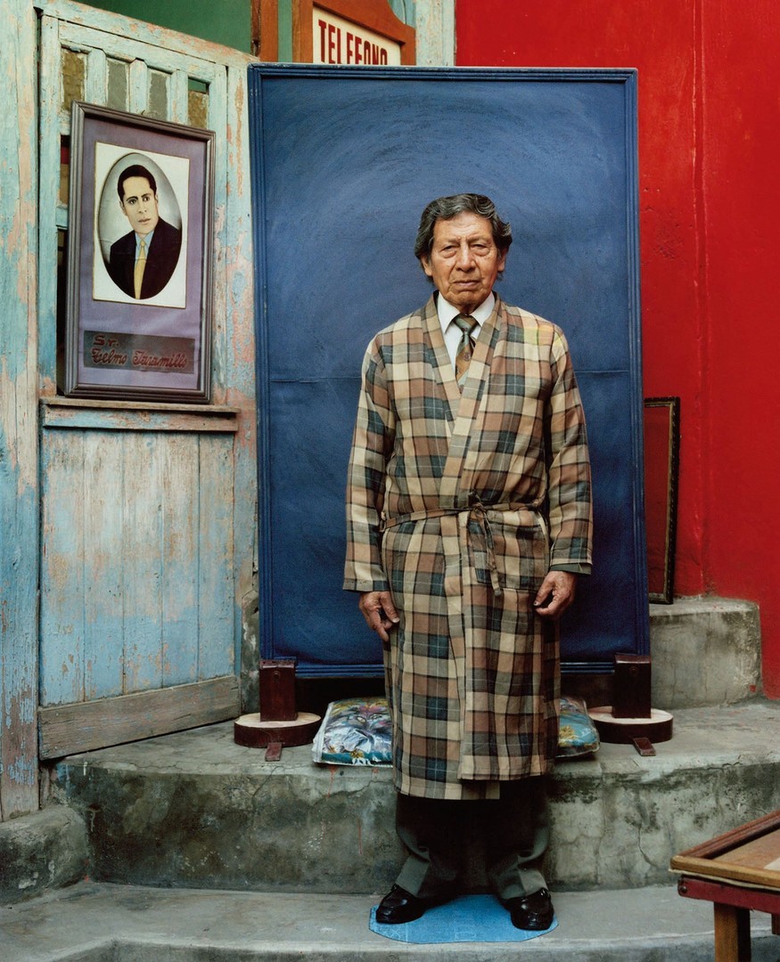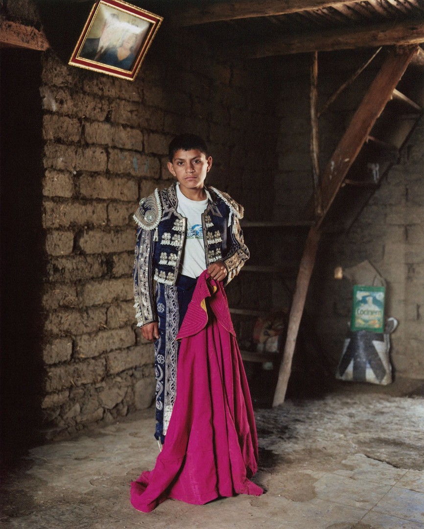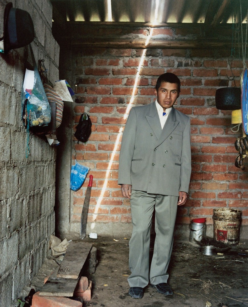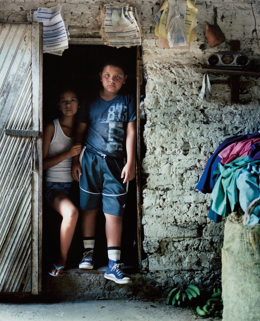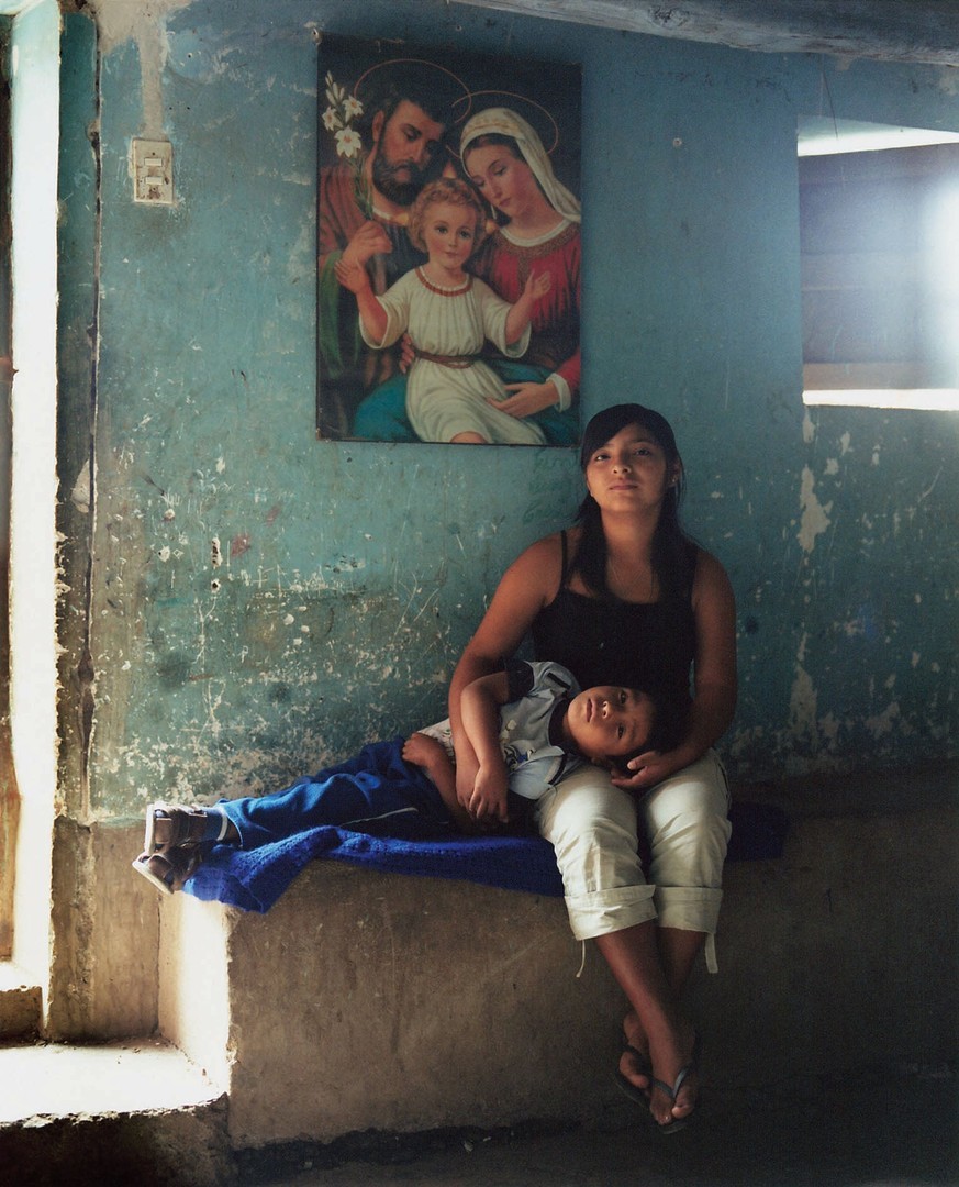 San Felipe ist eine kleiner Ort in der Provinz Jaen in Peru. Ich wurde vom Bürgermeister empfangen, dem ich einige Tage zuvor telefonisch mein Projekt erläuterte. Er hatte mit einigen der Dorfbewohner gesprochen und beim Rundgang durch den Ort sah ich durch ein offenes Fenster ein Mädchen mit einem Jungen auf ihrem Schoß unter einem Bild der heiligen Familie. Sofort wurde mir die fast religiöse Wirkung dieser Situation bewusst. Das verblichene Madonnenblau der Wand, die Dunkelheit eines Kirchenraumes, die Überstrahlung des Lichts und die Haltung des Mädchens mit ihrem Bruder, die einer Pieta glich.