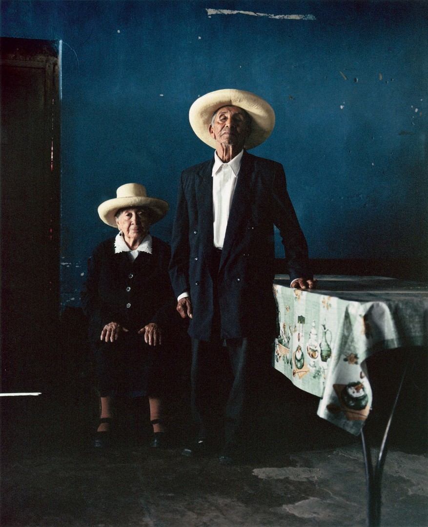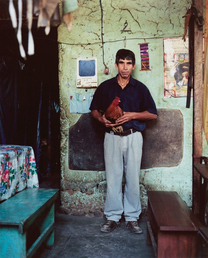 Manchmal hat man ein Gefühl im Bauch, kurz vor einem guten Foto zu stehen. Das der Weg oftmals aber länger als erwartet ist, wurde mir beim Zustandekommen des Doppelporträts von Maria und Cesar bewusst. In der kleinen Ortschaft Chillanquer erzählte mir jemand, das etwasaußerhalb ein sehr großer Mann mit einer viel kleineren Frau wohnt. Ich folgte meinem Bauchgefühl und der Wegbeschreibung mehrere Stunden durch die Berge und fand trotz stärker werdender Zweifel das Haus dieses Ehepaars. Und da sie selten Besuch bekamen, und Cesar deutsche Vorfahren hatte, waren sie bereit, sich porträtieren zu lassen. Sein bester Kampfhahn durfte auf diesem Foto nicht fehlen.Obwohl ich weniger als eine Stunde ihr Gast war, traf ich erst nach fast sieben Stunden wieder in Chillaquer ein.Allerdings war der Rückweg begleitet vom Glücksgefühl, ein gutes Foto gemacht zu haben.