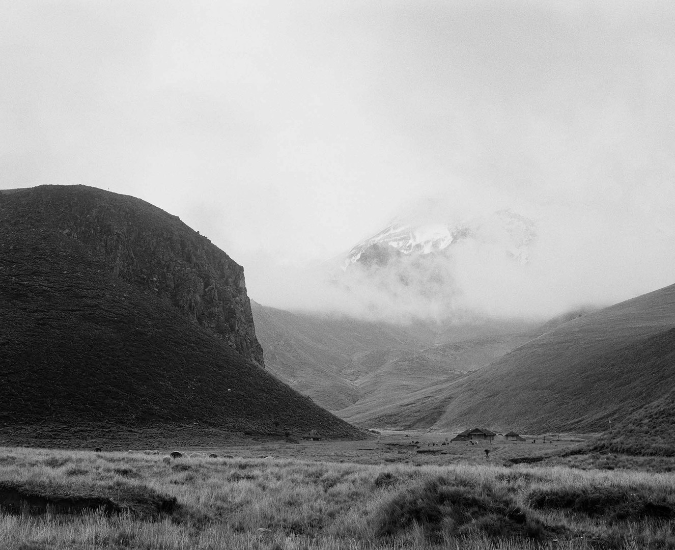 Natürlich musste ich den Chimborazo fotografieren, mein Aufnahmestandpunkt war gefunden und ich fuhr täglich zum Sonnenaufgang - er versprach das beste Licht für die Aufnahme- von Riobamba aus in mehreren Stunden dorthin. Der Chimborazo verhielt sich wie in einer Legende der Indios, er zeigte sich dem Neugierigen nicht und war jedes mal in Nebel gehüllt. Erst am 3. Tag wurde mir bewusst, dass ich nicht den Chimborazo fotografieren muss, sondern das Geheimnis dieses Berges.