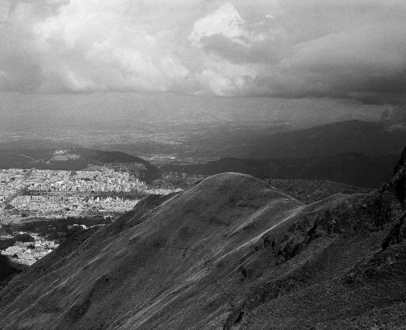 Ein Blick auf Quito, der Hauptstadt Ecuadors, vom „Hausberg“ Rucu Pinchincha. Der aktive und 4690 Meter hohe Vulkan erhebt sich majestätisch über der Stadt und bescherte Quito 1999 beim letzten Vulkanausbruch einen starken Ascheregen. Als einer der ersten Europäer bestieg Alexander von Humboldt 1802 beide Gipfel - der Rucu Pinchincha hat einen Bruder, einen etwas höheren zweiten Gipfel, den Guagua Pinchincha.